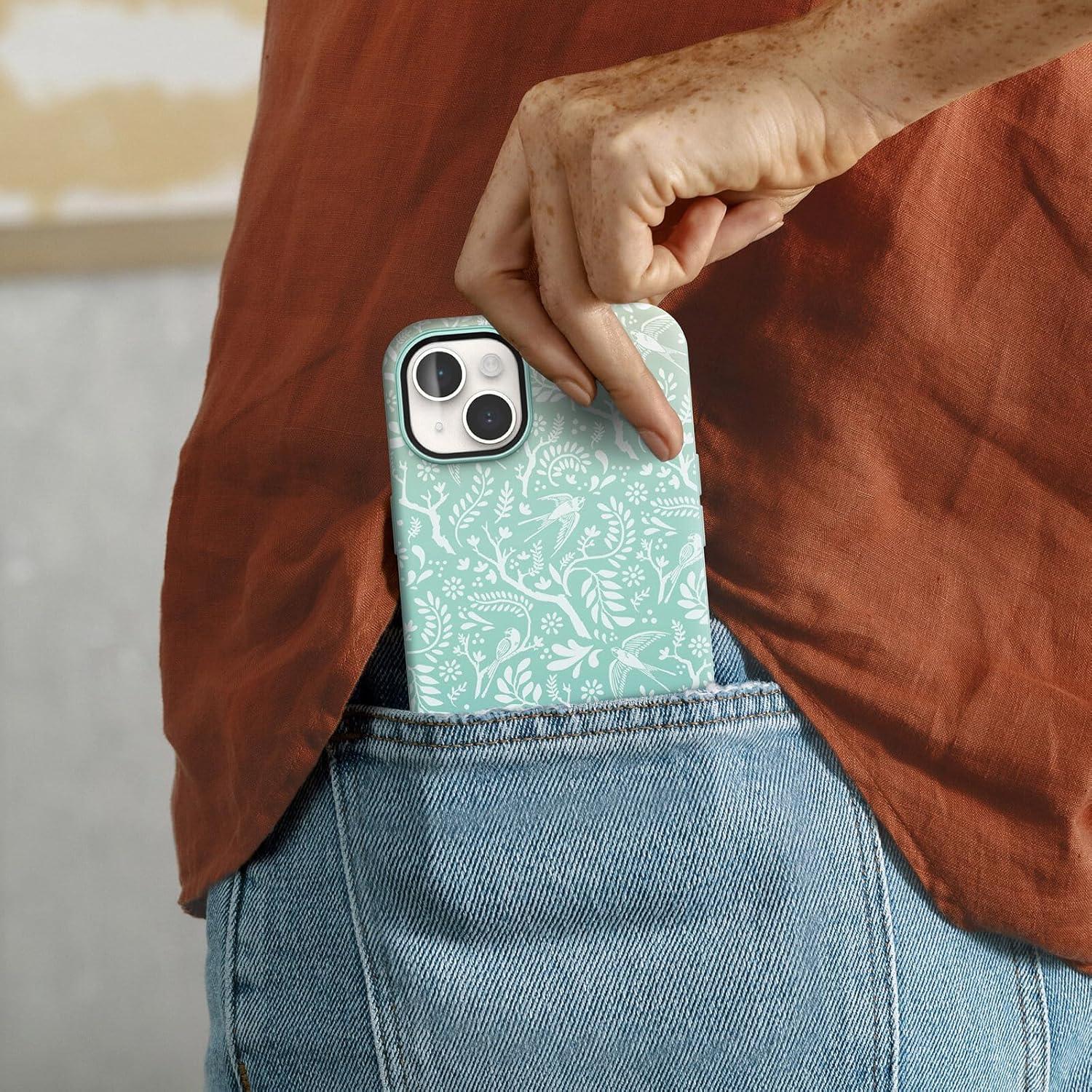 • OtterBox iPhone 14 Plus Symmetry Series+ Case – AMERICAN FLAG, Ultra-Sleek, Snaps to MagSafe, Raised Edges Protect Camera & Screen(Feathers and Ferns)