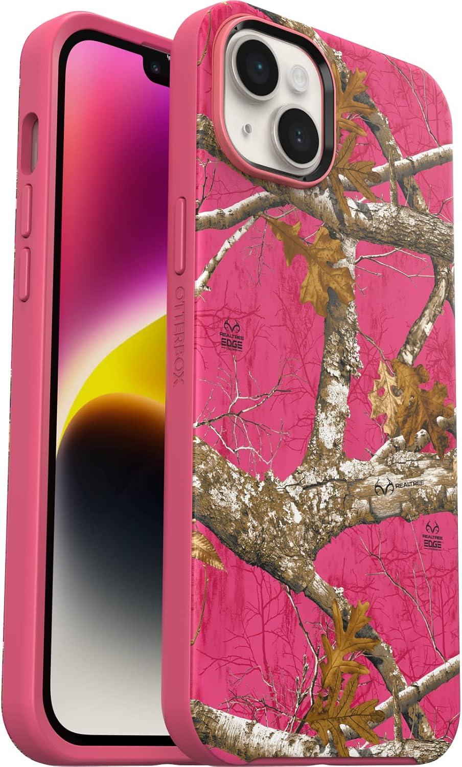 • OtterBox iPhone 14 Plus Symmetry Series+ Case – AMERICAN FLAG, Ultra-Sleek, Snaps to MagSafe, Raised Edges Protect Camera & Screen(Realtree Flamingo Pink (Gen 2))