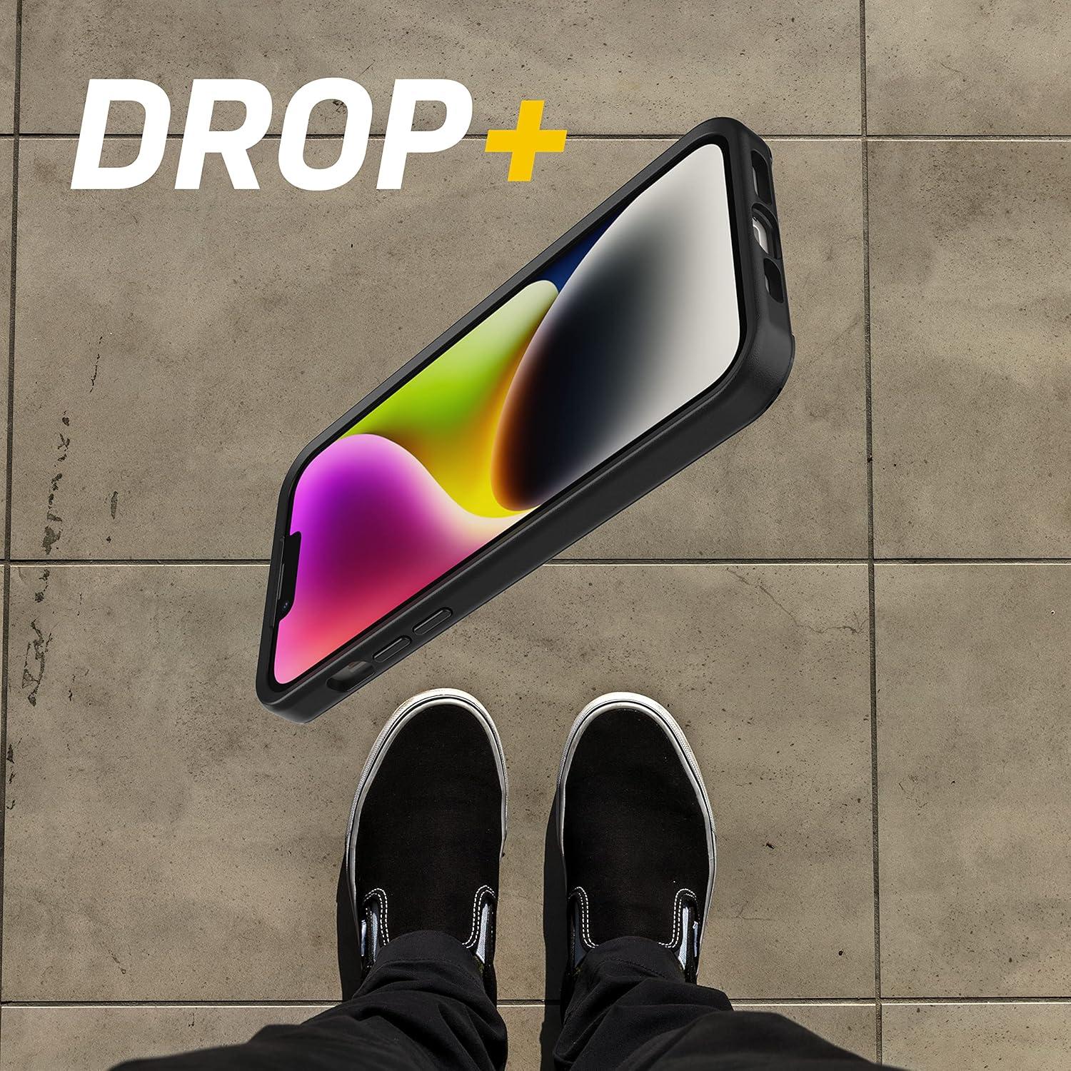 • OtterBox iPhone 14 Plus Symmetry Series+ Case – CLEAR , ultra-sleek, snaps to MagSafe, raised edges protect camera & screen(Black)