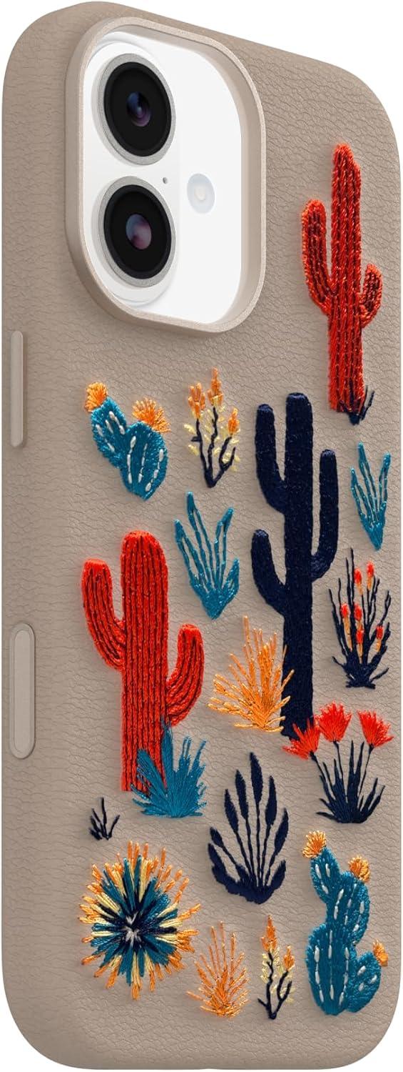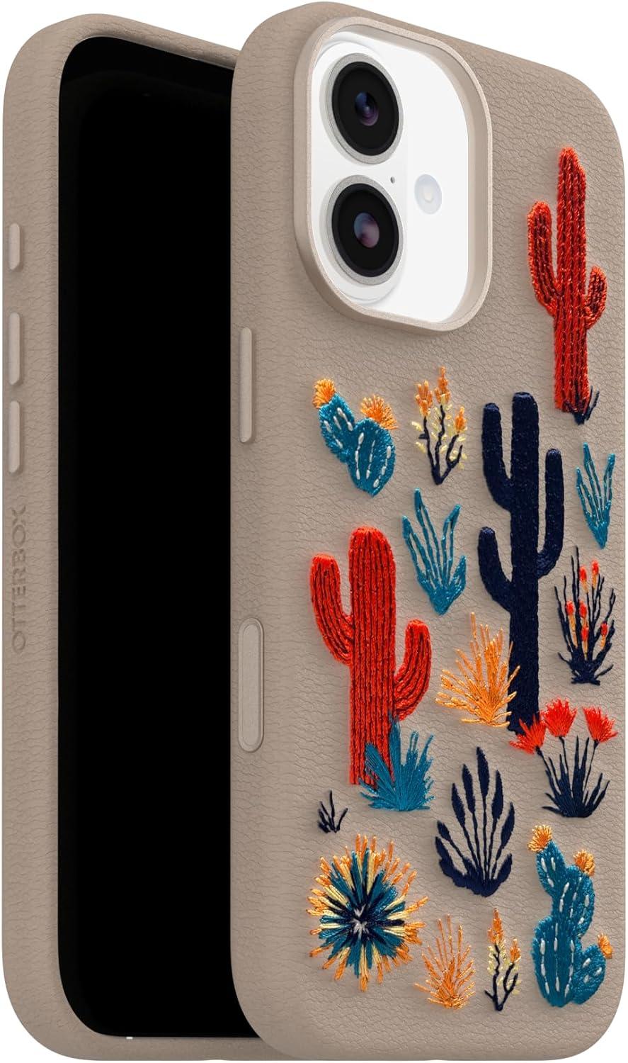 OtterBox iPhone 17 Symmetry Series Cactus Leather Embroidery Case – Cactus Garden – Grey