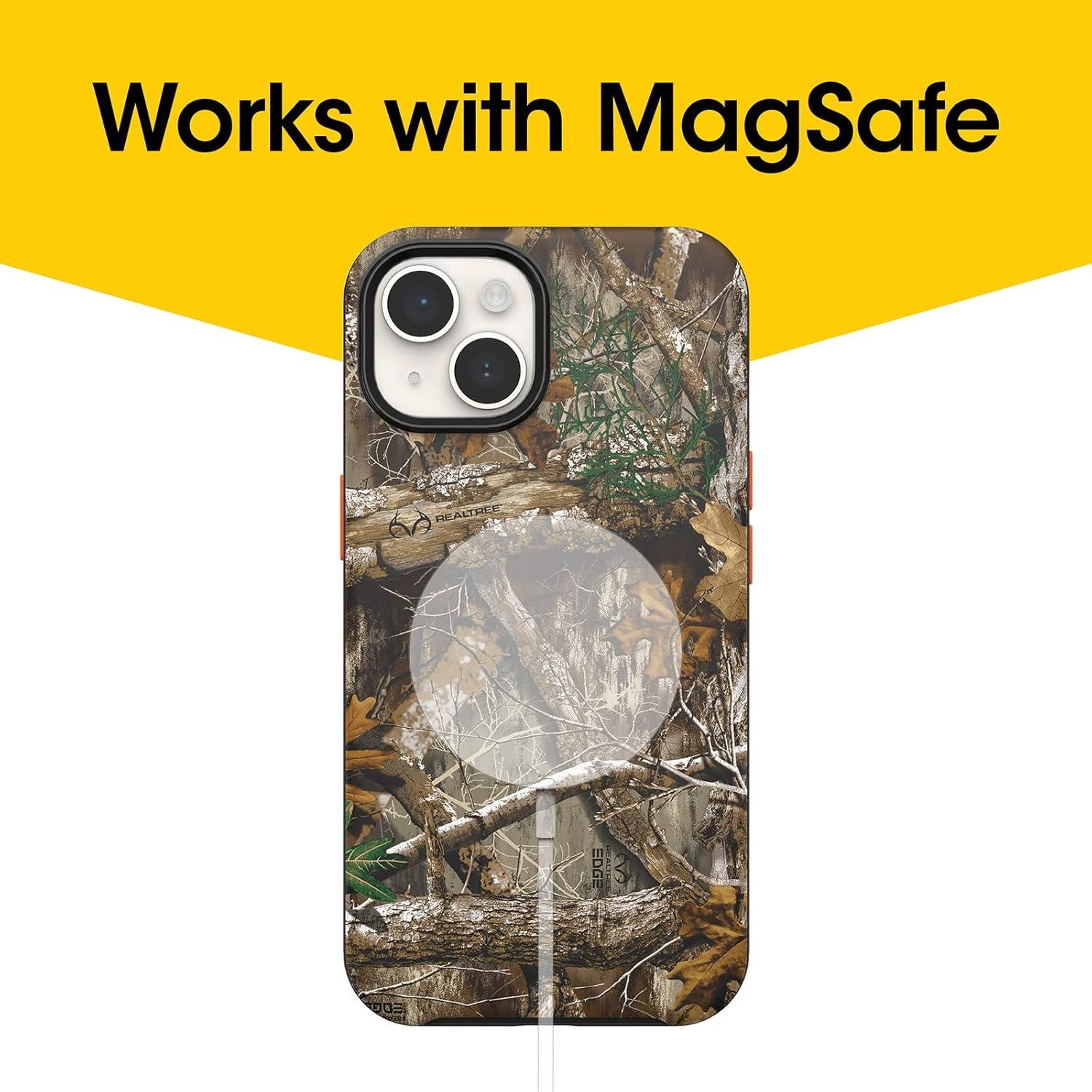 OtterBox Symmetry Series+ Graphics Antimicrobial Case with MagSafe for iPhone 14 & iPhone 13 – Realtree Blaze Edge (Camo)