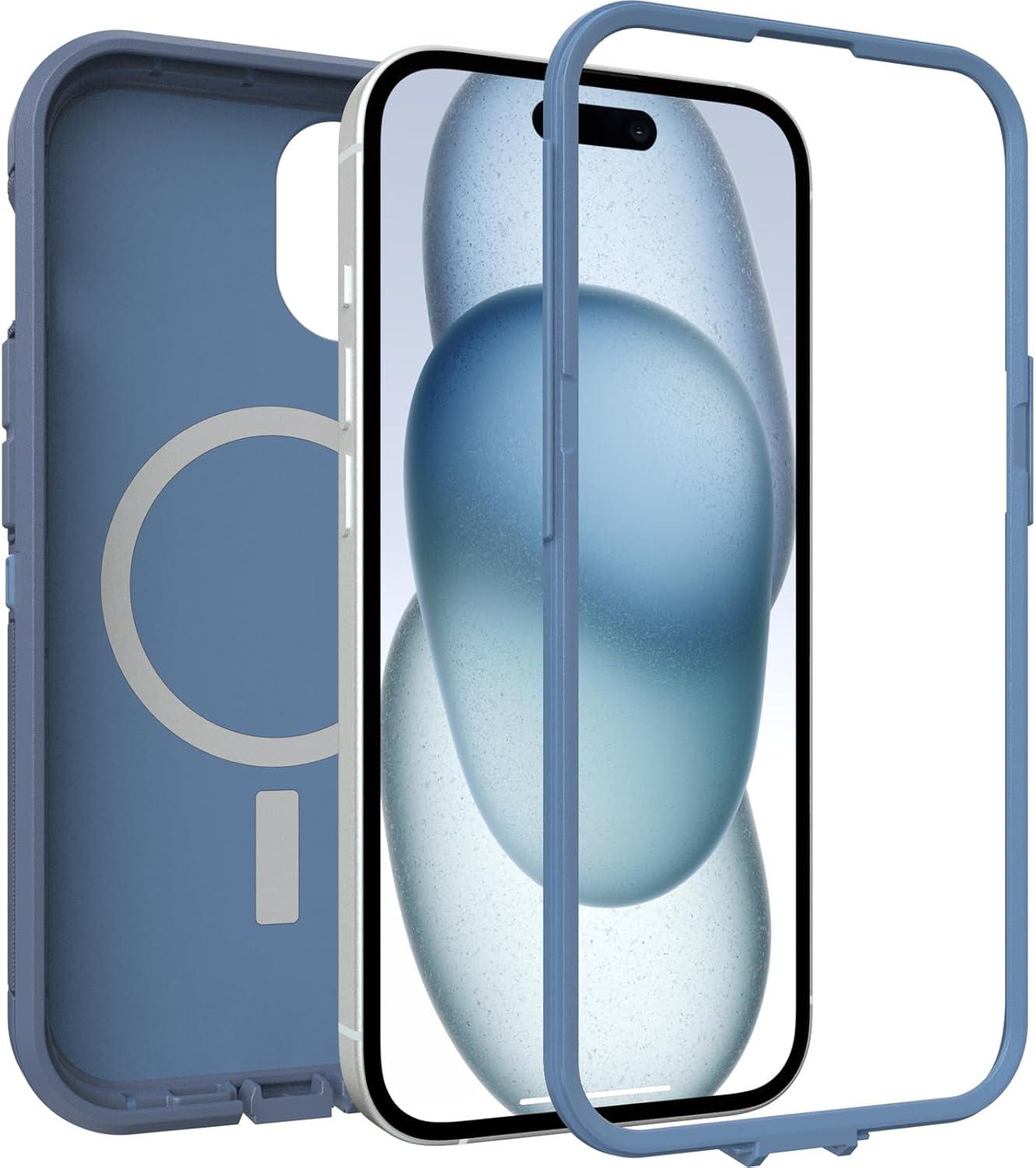 OtterBox iPhone 16e, 15, 14, & 13 Defender Series XT Case – Baby Blue Jeans (Blue), screenless, Rugged, Snaps to MagSafe, Lanyard Attachment(Mountain Frost)