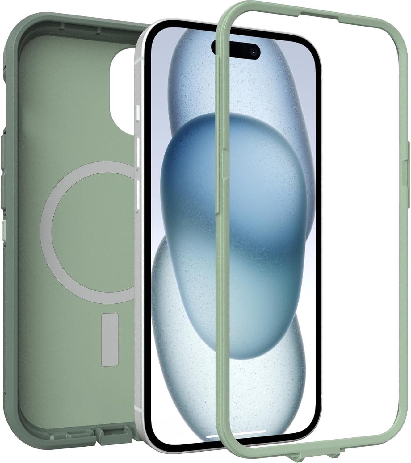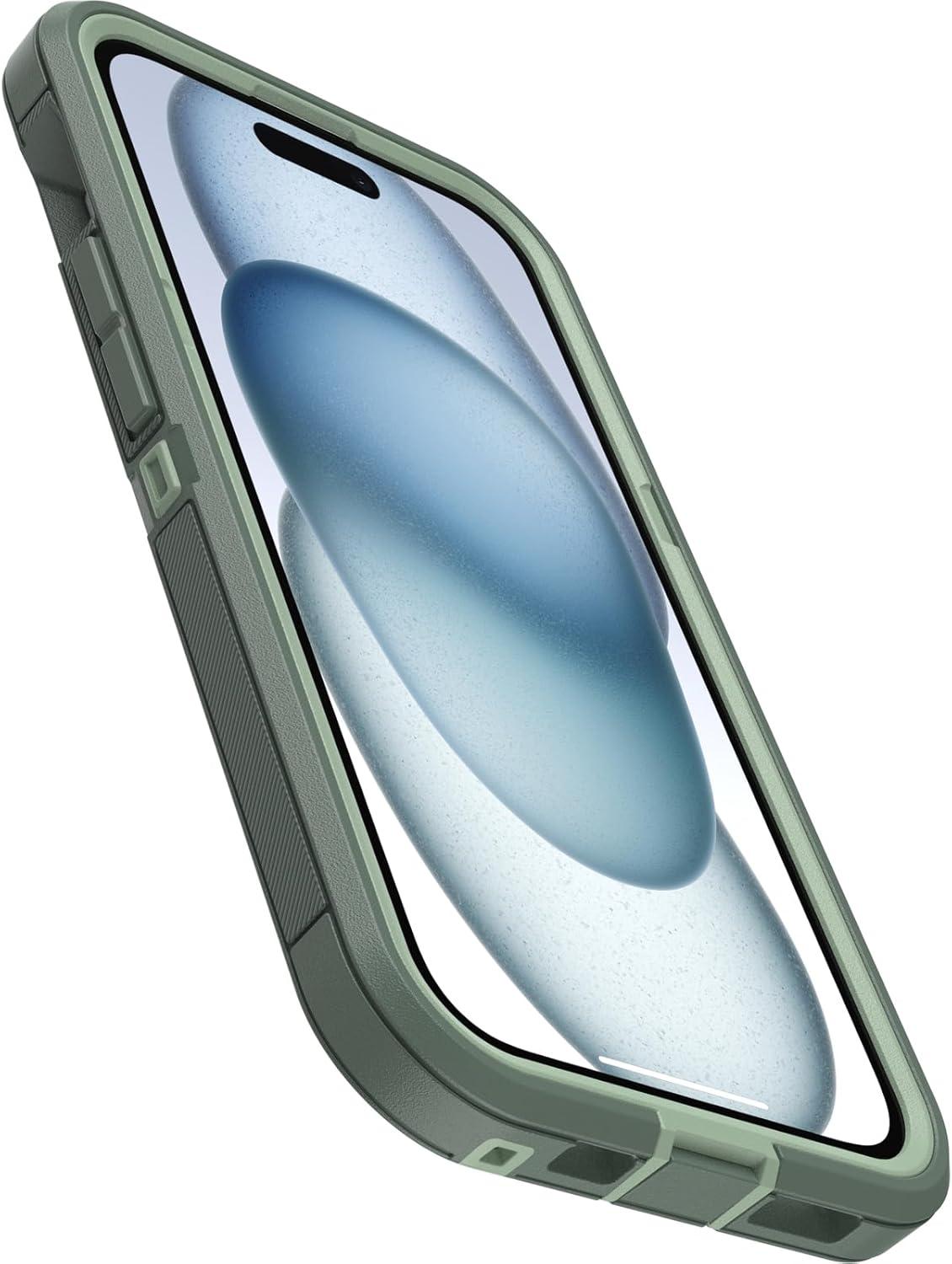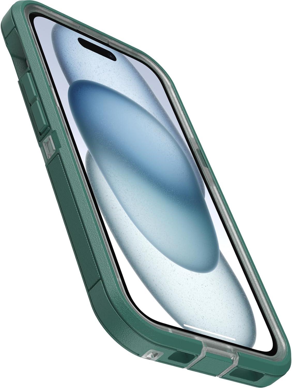 OtterBox iPhone 16e, 15, 14, & 13 Defender Series XT Case – Baby Blue Jeans (Blue), screenless, Rugged, Snaps to MagSafe, Lanyard Attachment(Velvet Evergreen)