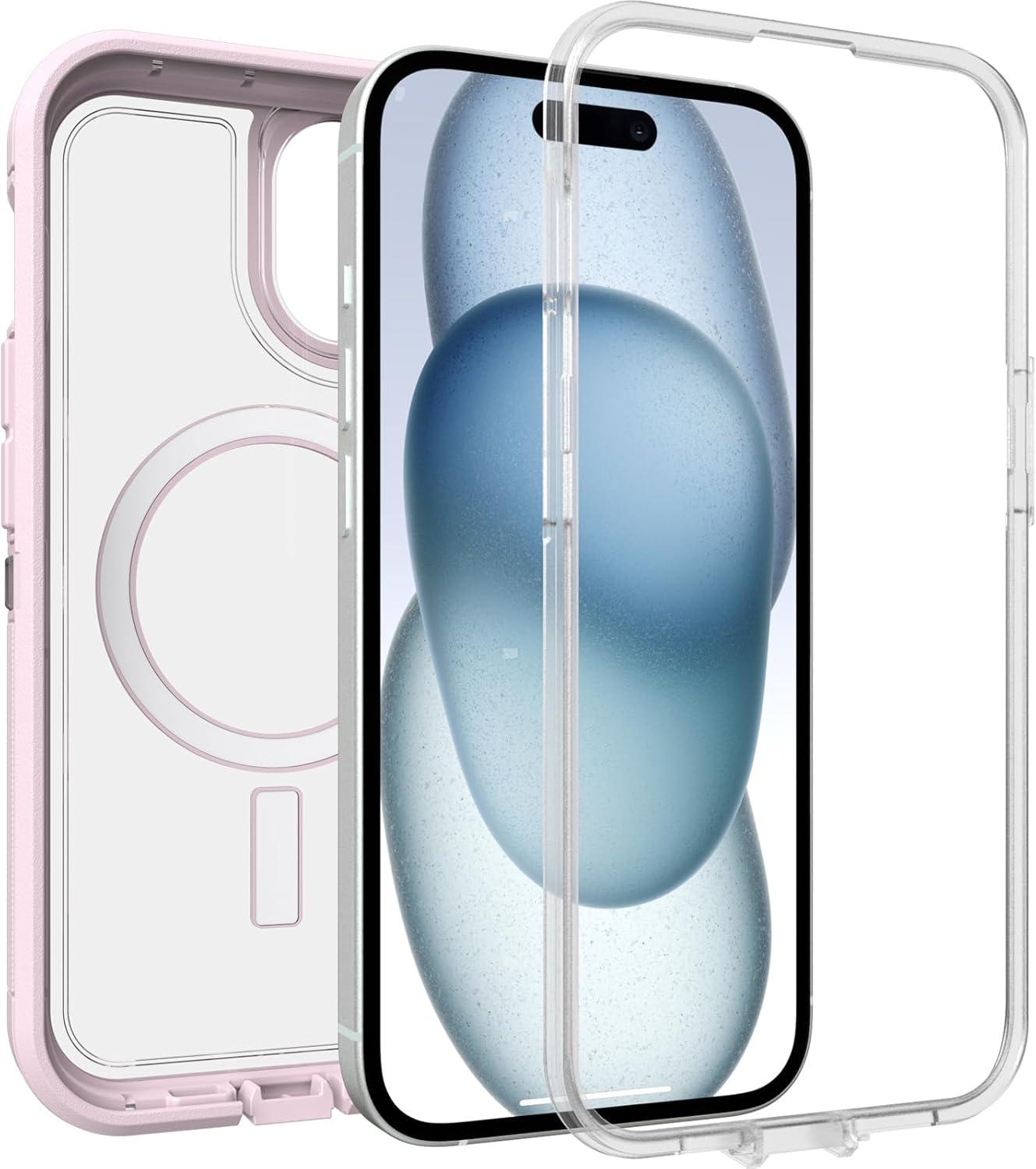 OtterBox iPhone 16 Symmetry Series Clear Case – Baby Blue Jeans(Foxberry Pink)
