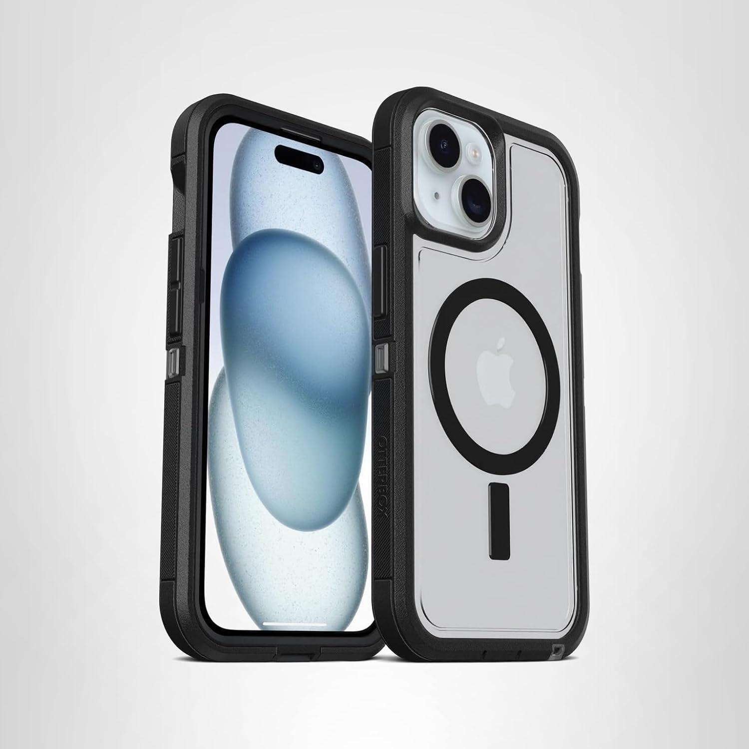 OtterBox iPhone 16e, 15, 14, & 13 Defender Series XT Case – BLACK, screenless, rugged, snaps to MagSafe, lanyard attachment (ships in polybag)(Black/Clear)