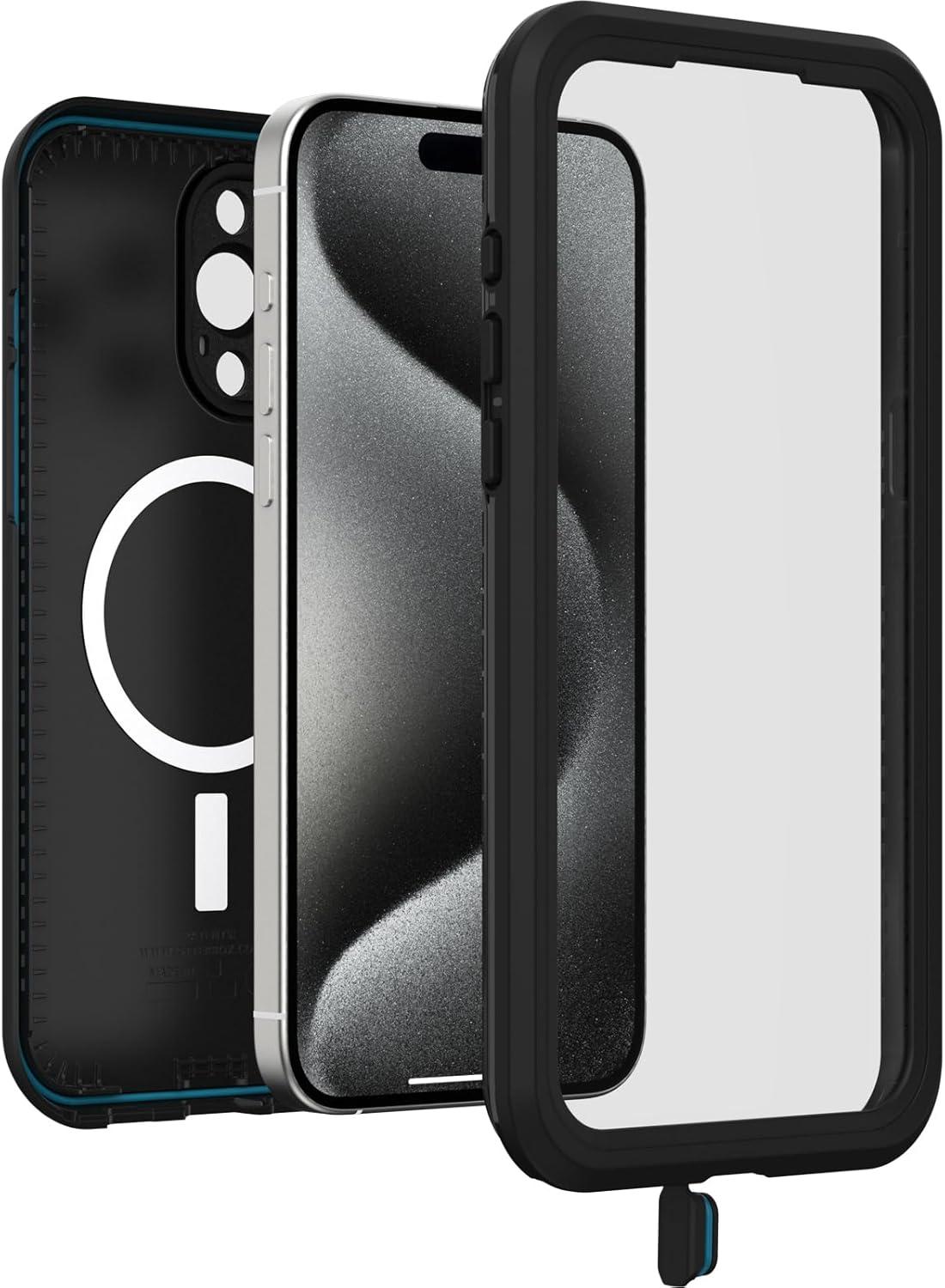 OtterBox iPhone 15 Pro MAX (Only) FRĒ Series Waterproof Case with MagSafe (Designed by LifeProof) – Black, Waterproof, 60% Recycled Plastic, Sleek and Stylish(Black)