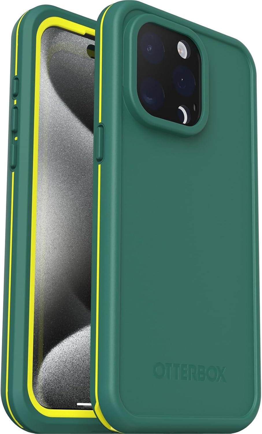 OtterBox iPhone 15 Pro MAX (Only) FRĒ Series Waterproof Case with MagSafe (Designed by LifeProof) – Black, Waterproof, 60% Recycled Plastic, Sleek and Stylish(Green)