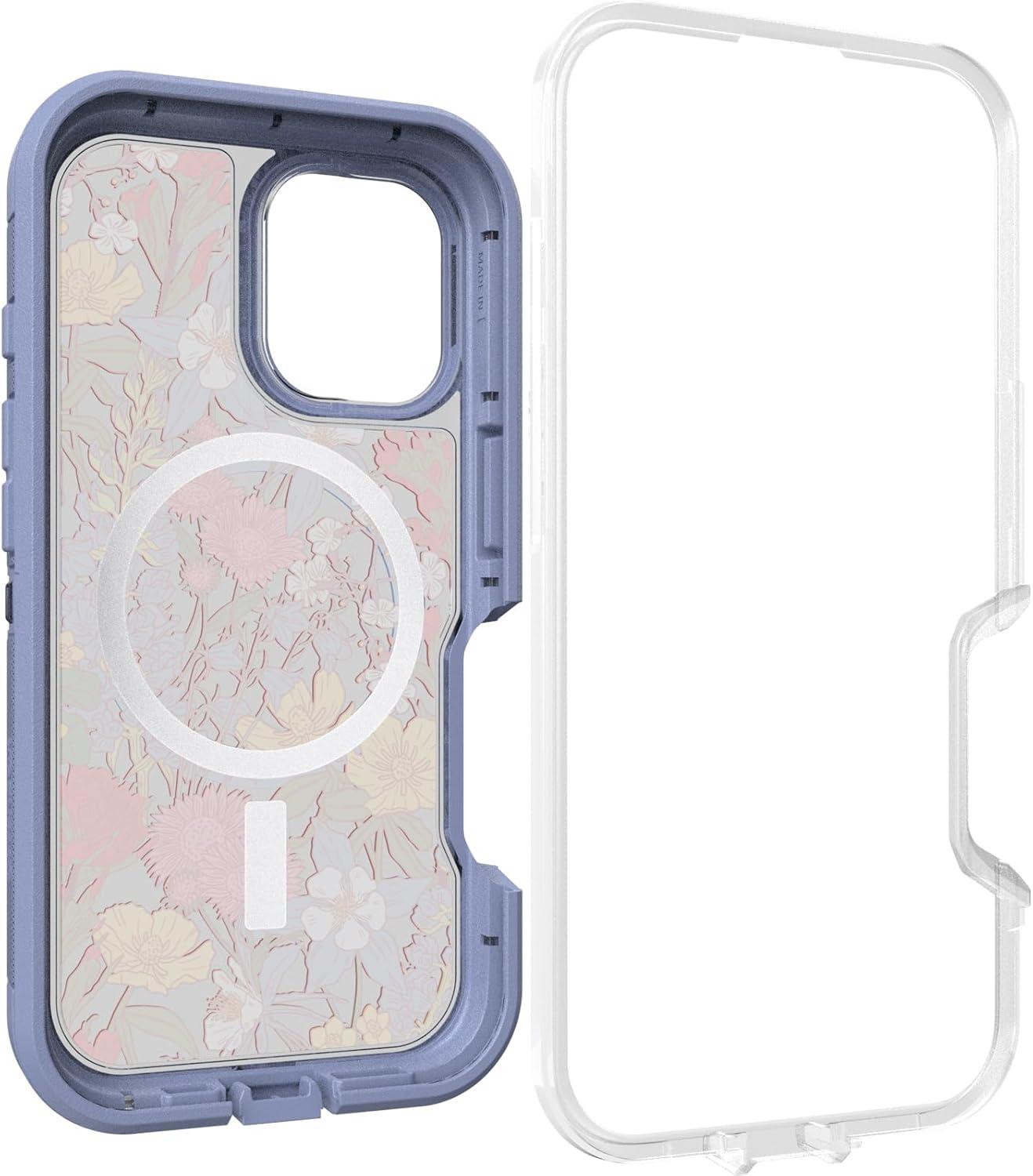 OtterBox iPhone 16 Pro Defender Series XT Clear Case – Floral Purple(Floral Purple)