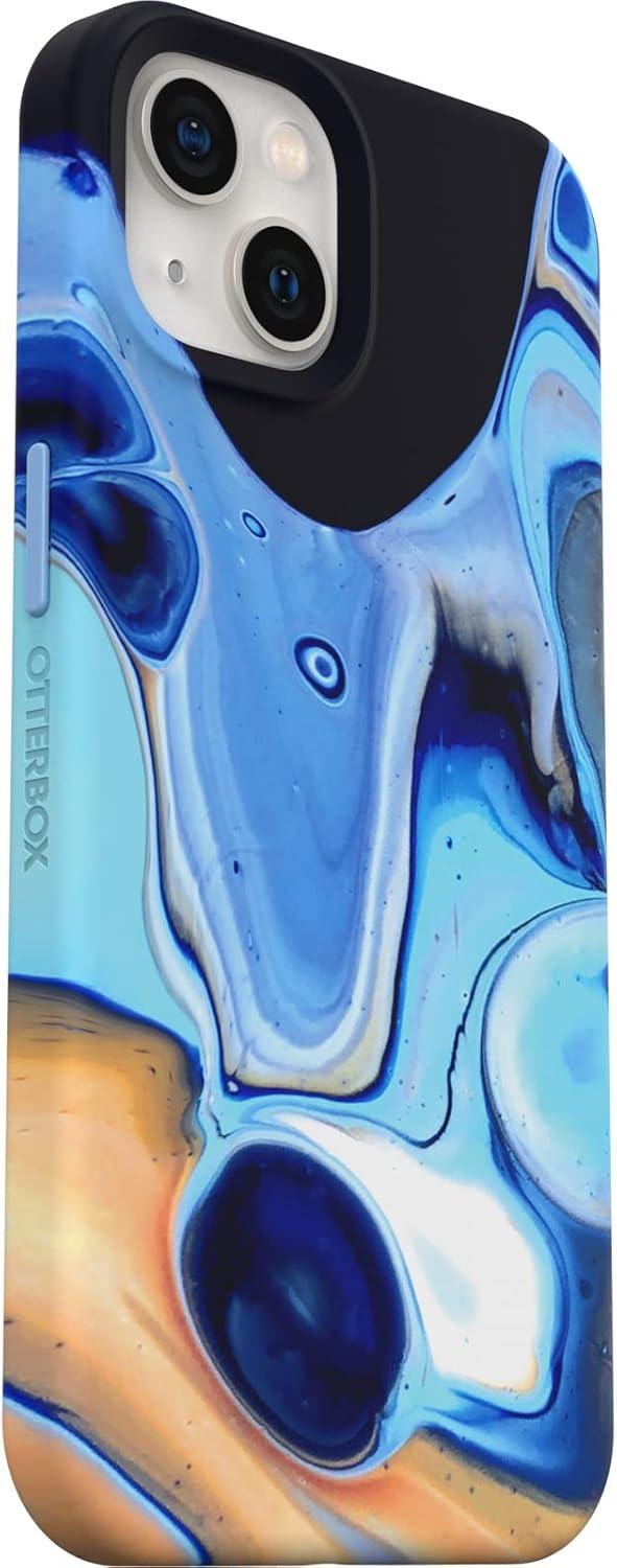 OtterBox iPhone 13 Soft Touch Flexible Fashion case – Mercury (Blue/Black), Ultra Slim, Colorful Graphic, Snaps to Magsafe, Raised Edges,(Blue)