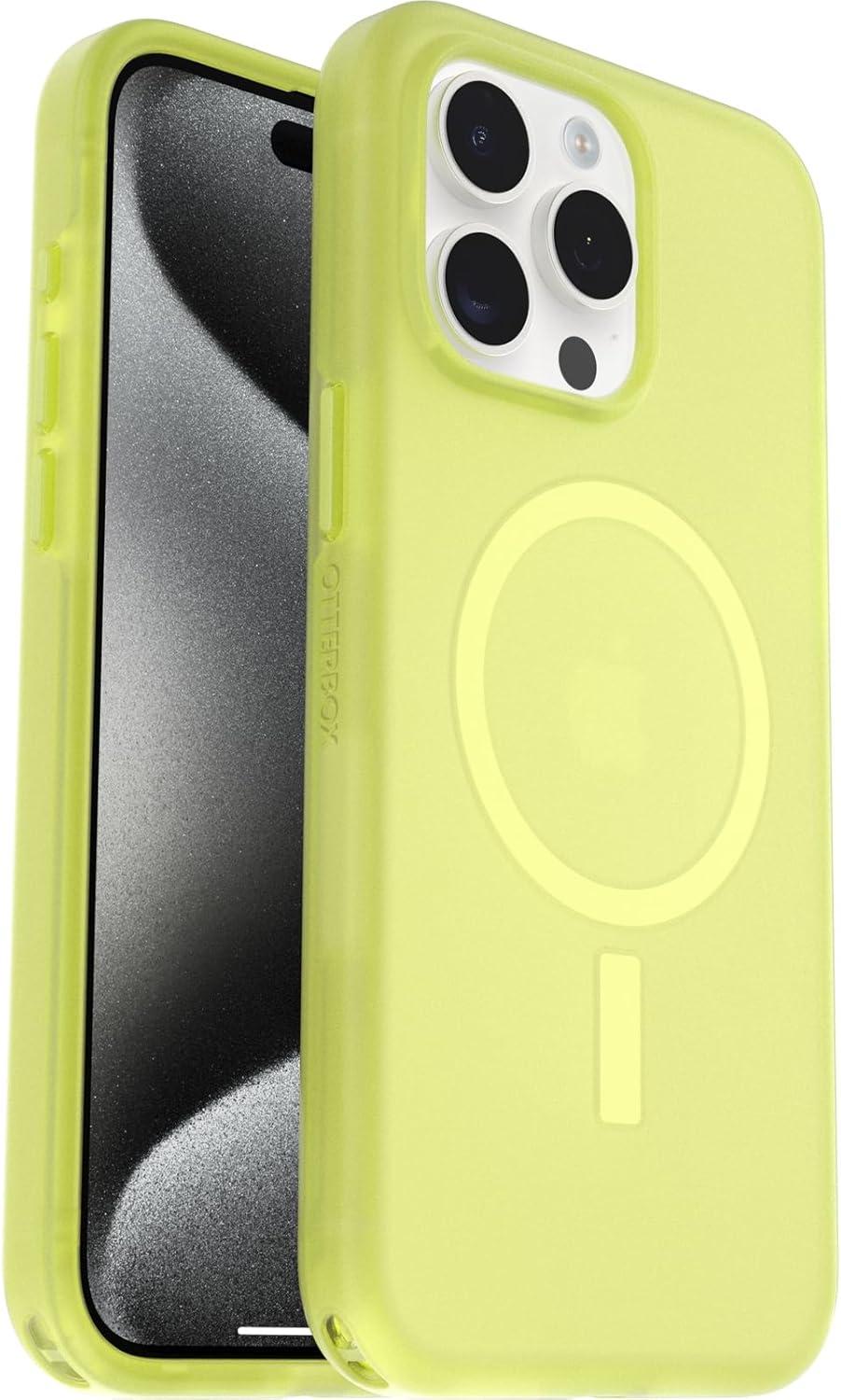 OtterBox Symmetry Series Soft Touch for MagSafe for iPhone 15 Pro Max – Lemon Pucker (Green), Sleek Rubber Design, Smooth Finish, Camera Bumpers, and Protective Screen Lip(Lemon Pucker)
