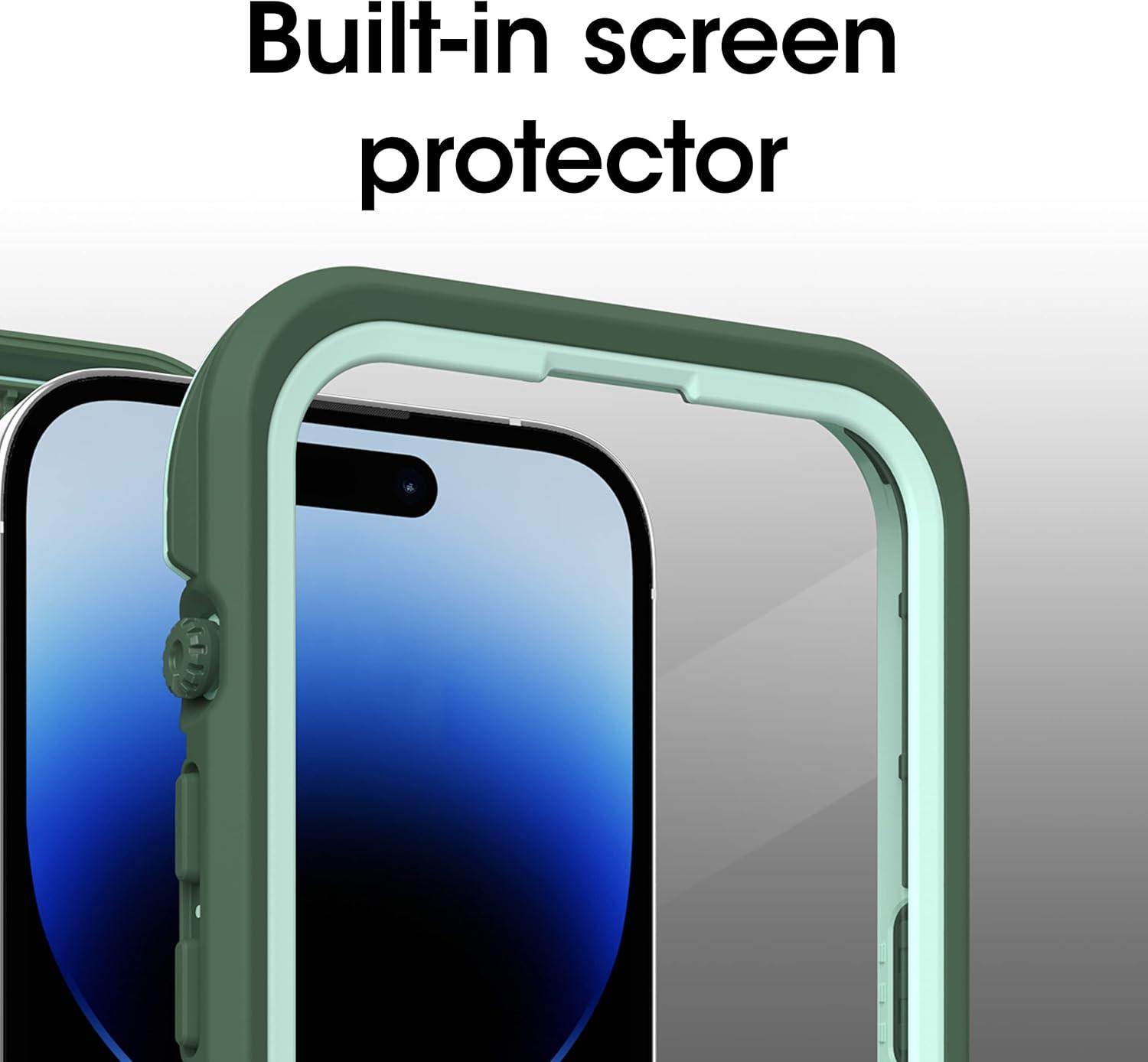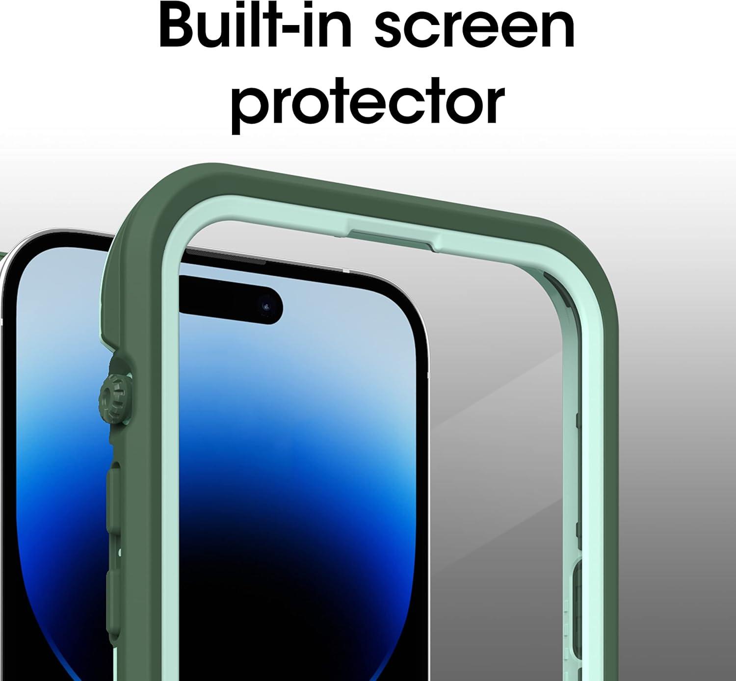 OtterBox FRĒ Series Waterproof Case with MagSafe (Designed by LifeProof) for iPhone 14 Pro (ONLY) – Valor (Purple)(Green)