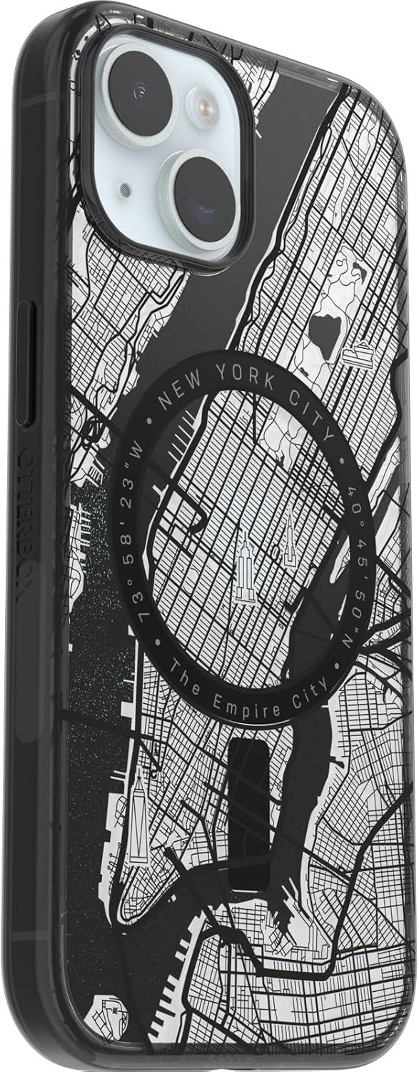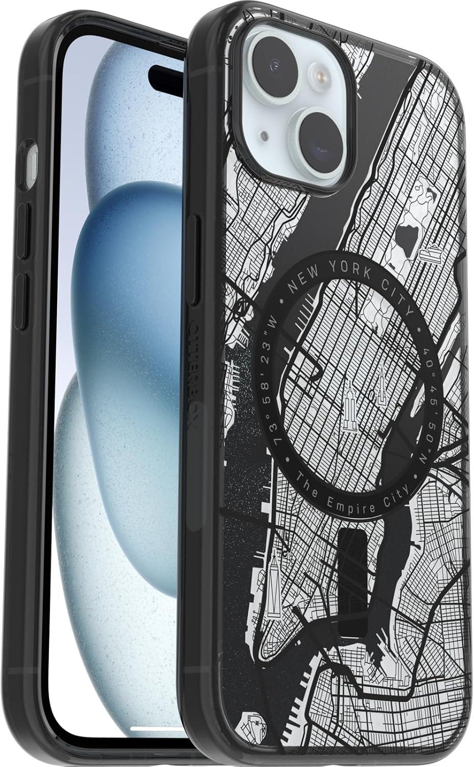 OtterBox Clear case with Colorful Grip Edge case for iPhone 15 – New York (Black)