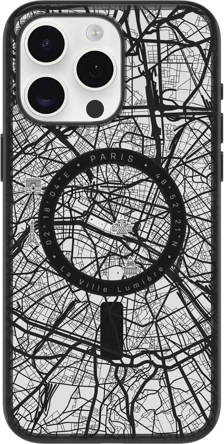 OtterBox Clear case with Colorful Grip Edge case for iPhone 15 Pro Max – New York (Black)(Paris (Black))