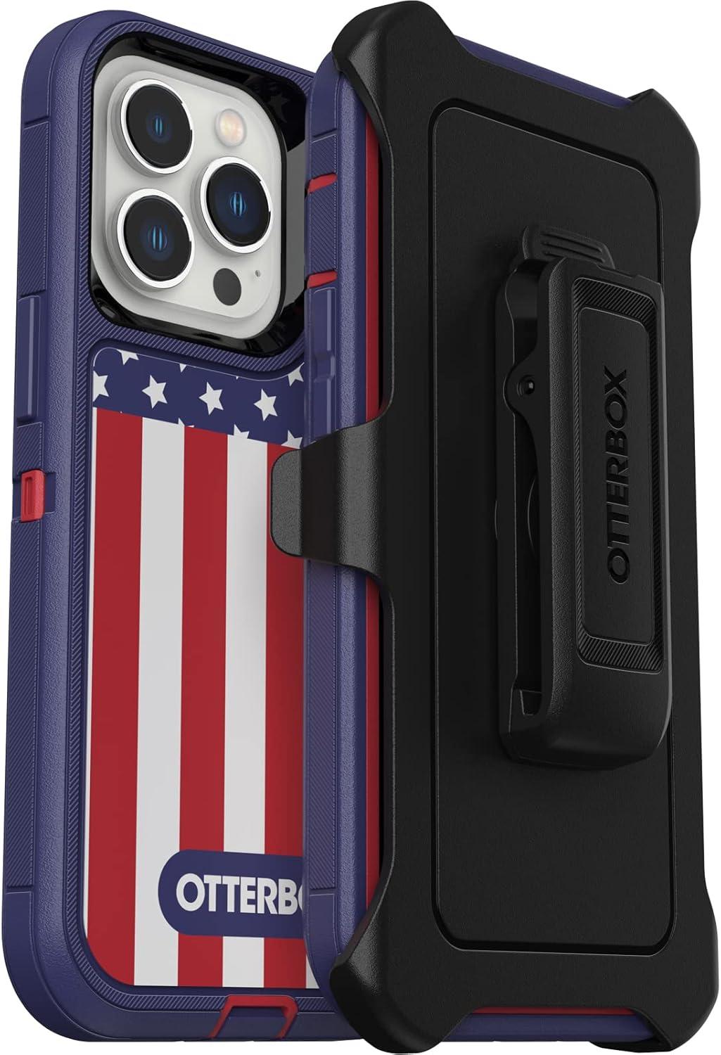 OtterBox iPhone 13 Pro Defender Series Case – American Flag, Rugged & Durable, with Port Protection, Includes Holster Clip Kickstand