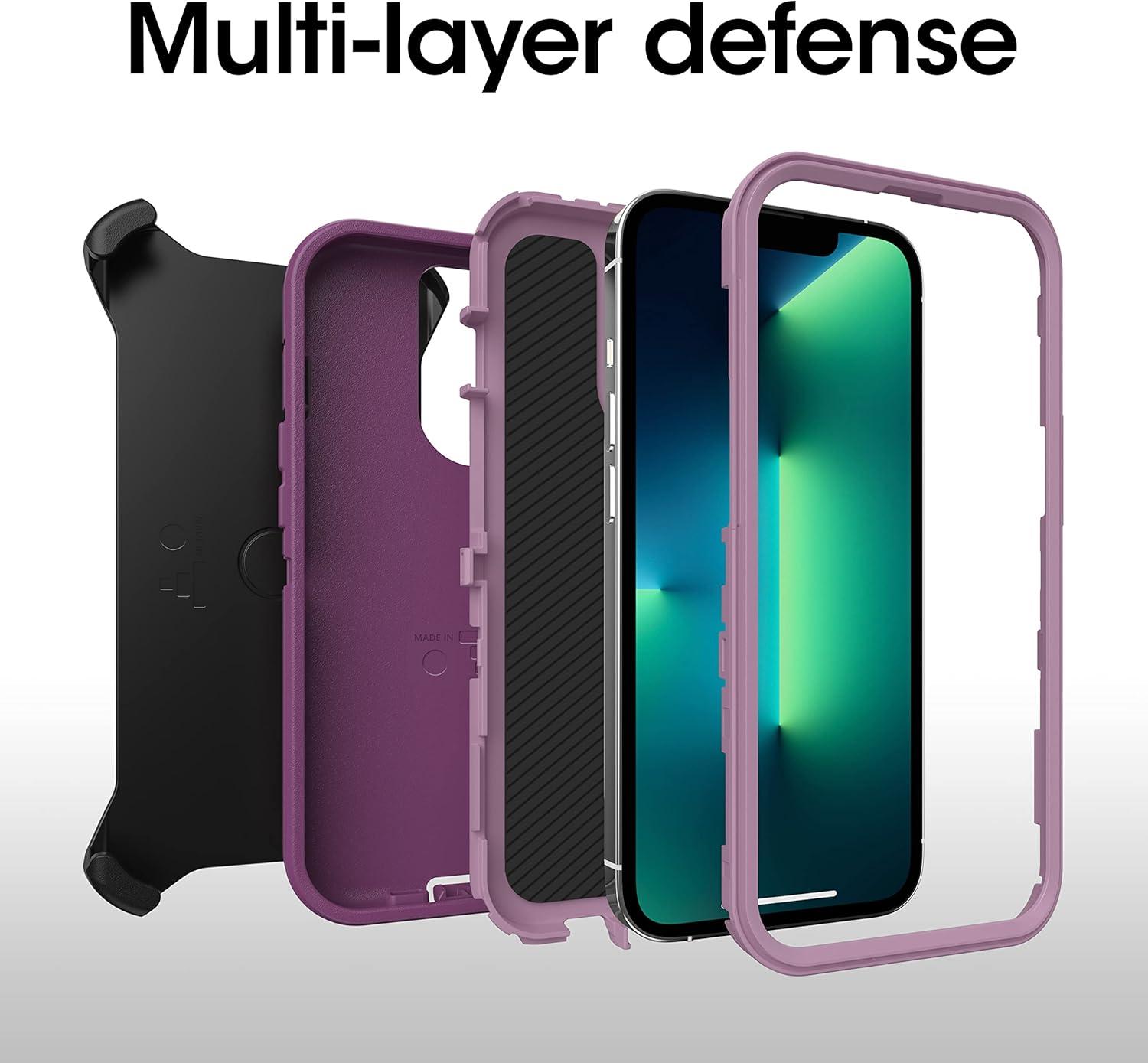 OtterBox iPhone 13 Pro (ONLY) Defender Series Case – Happy Purple, Rugged & Durable, with Port Protection, Includes Holster Clip Kickstand