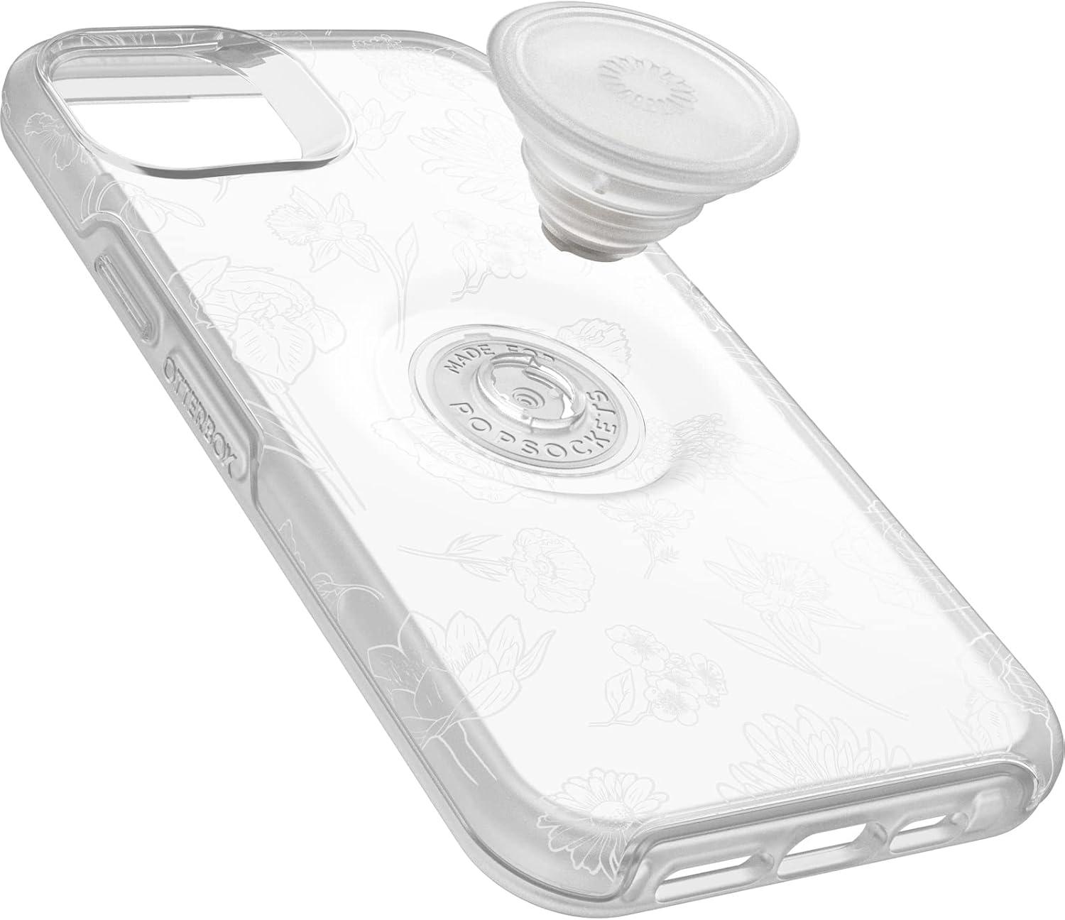 OtterBox iPhone 14 Plus Otter + Pop Symmetry Series Case – Black, Integrated PopSockets PopGrip, Slim, Pocket-Friendly, Raised Edges Protect Camera & Screen(Clear)