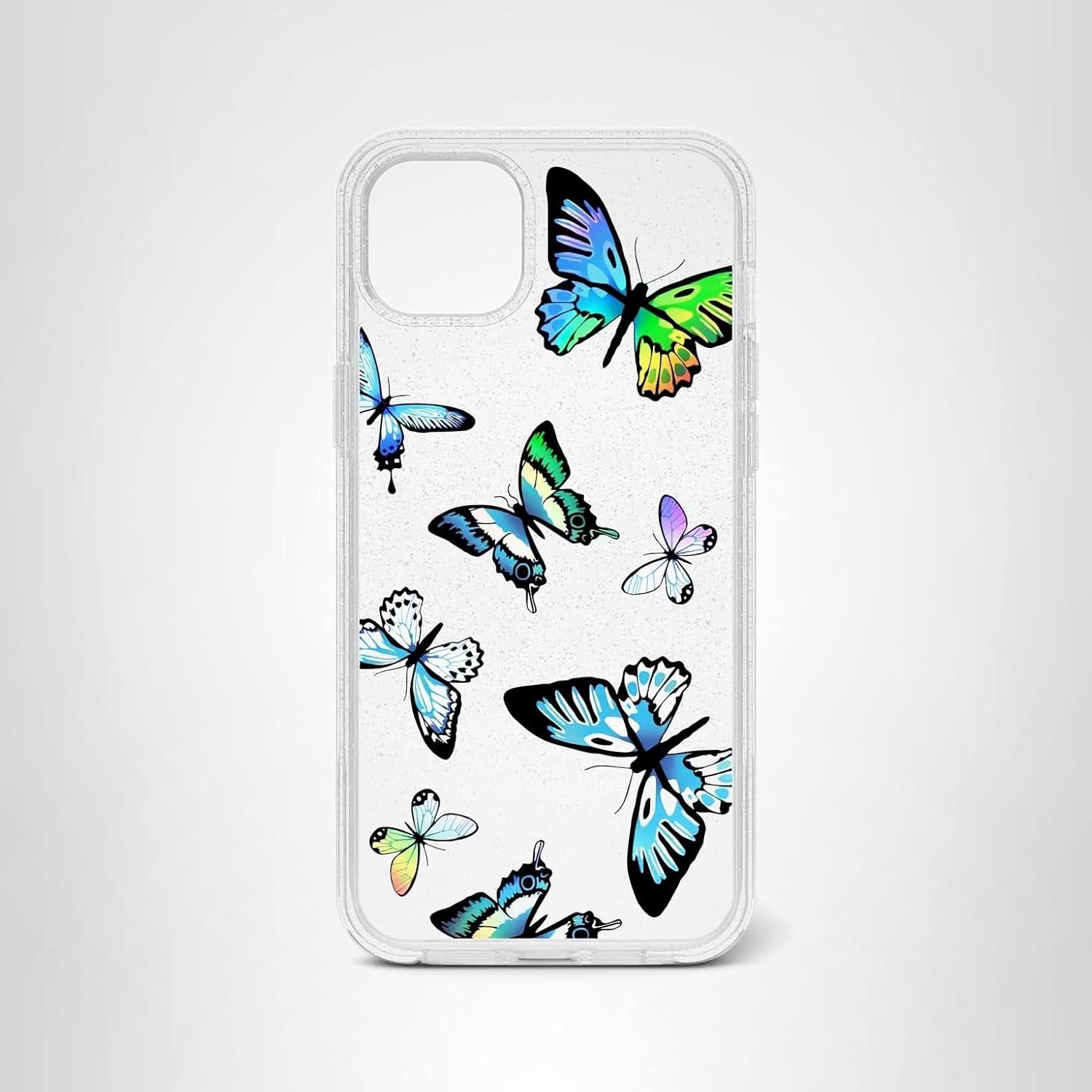 OtterBox iPhone 14 Plus Symmetry Series Case – STARDUST (Clear/Glitter), Ultra-Sleek, Wireless Charging Compatible, Raised Edges Protect Camera & Screen(Y2K Butterfly)