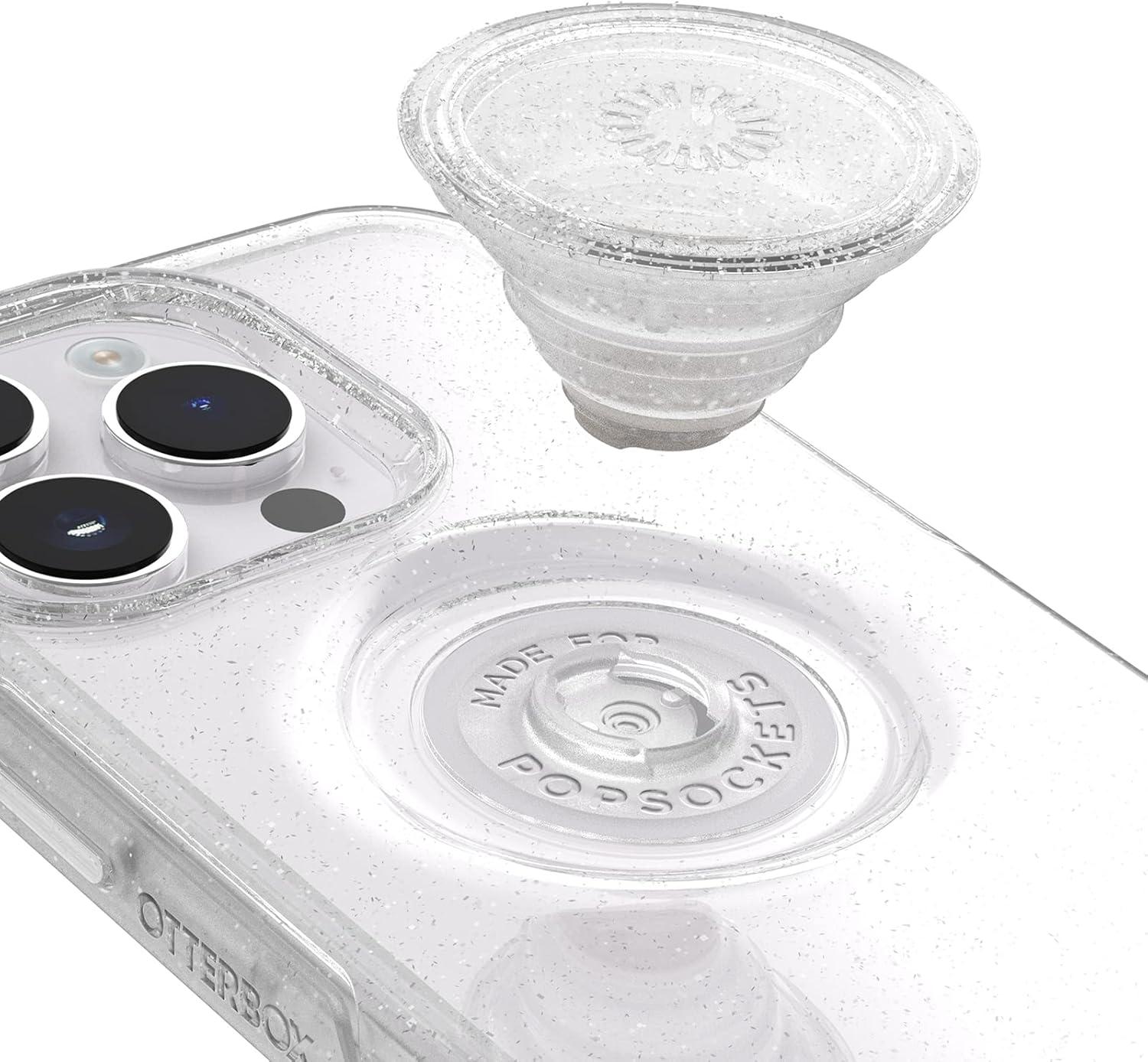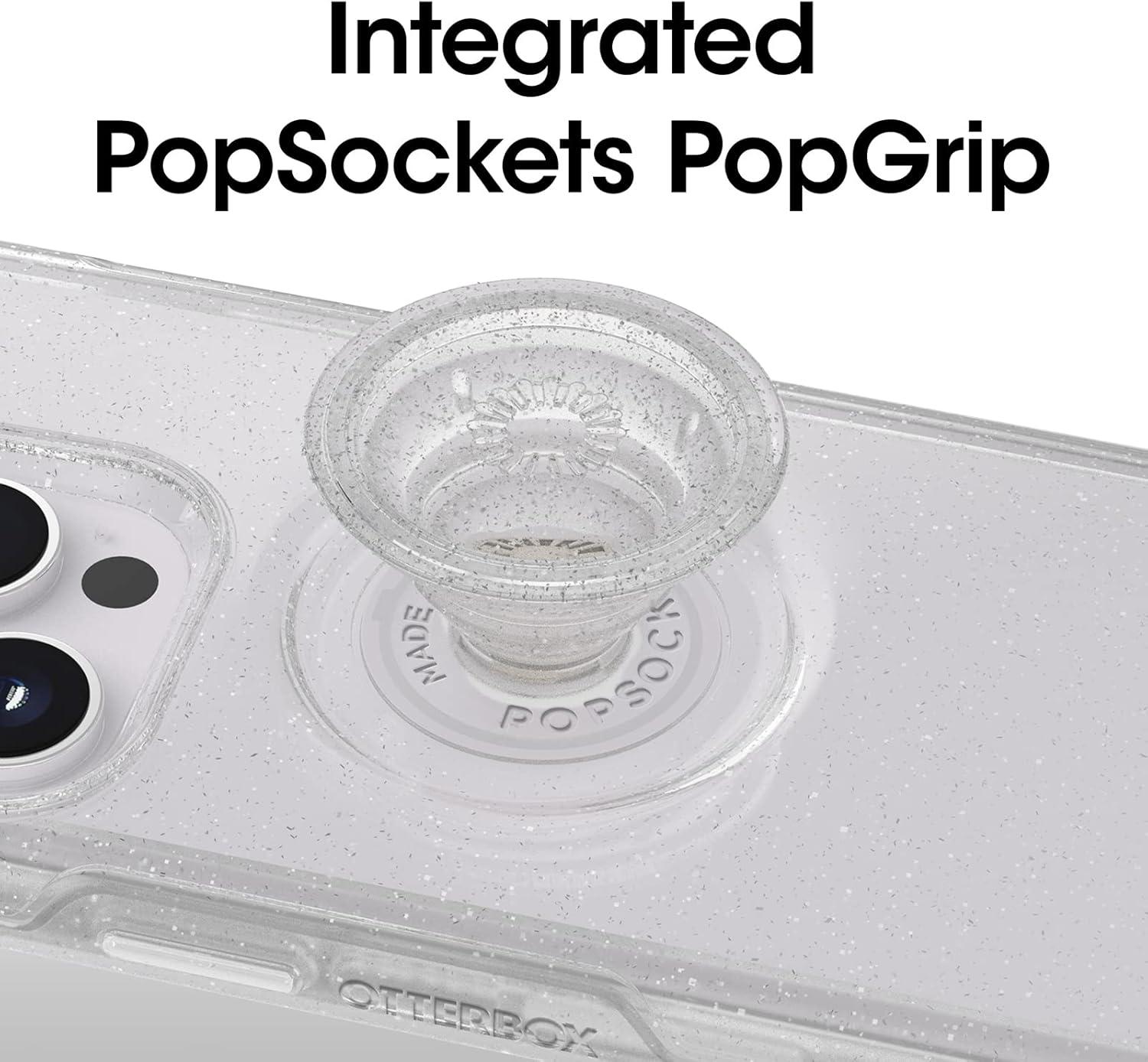 OtterBox iPhone 14 Pro Max (ONLY) Otter + Pop Symmetry Series Clear Case – Stardust POP (Clear/Glitter), Integrated PopSockets PopGrip, Slim, Pocket-Friendly, Raised Edges Protect Camera & Screen