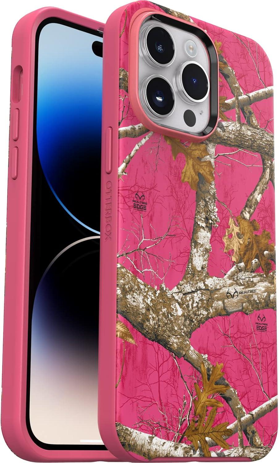 OtterBox iPhone 14 Pro Max (ONLY) Symmetry Series+ Case – Realtree Flamingo Pink (Camo) (GEN 2), Ultra-Sleek, Snaps to MagSafe, Raised Edges Protect Camera & Screen