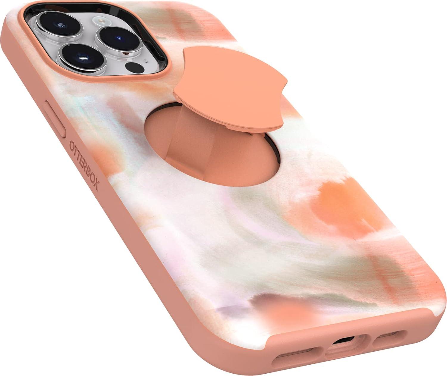 OtterBox iPhone 14 Pro Max OtterGrip Symmetry Series Case – CHILL Out (Green), Built-in Grip, Sleek case, Snaps to MagSafe, Raised Edges Protect Camera & Screen(Peaches)