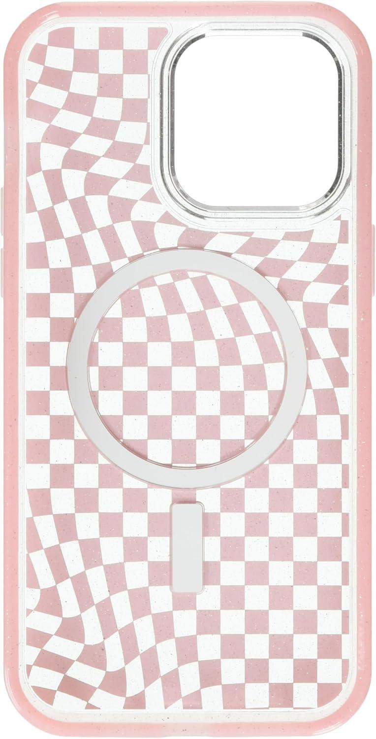 OtterBox iPhone 14 Pro Max Symmetry Series Clear Case – Checkmate (Pink), Snaps to MagSafe, Ultra-Sleek, Raised Edges Protect Camera & Screen