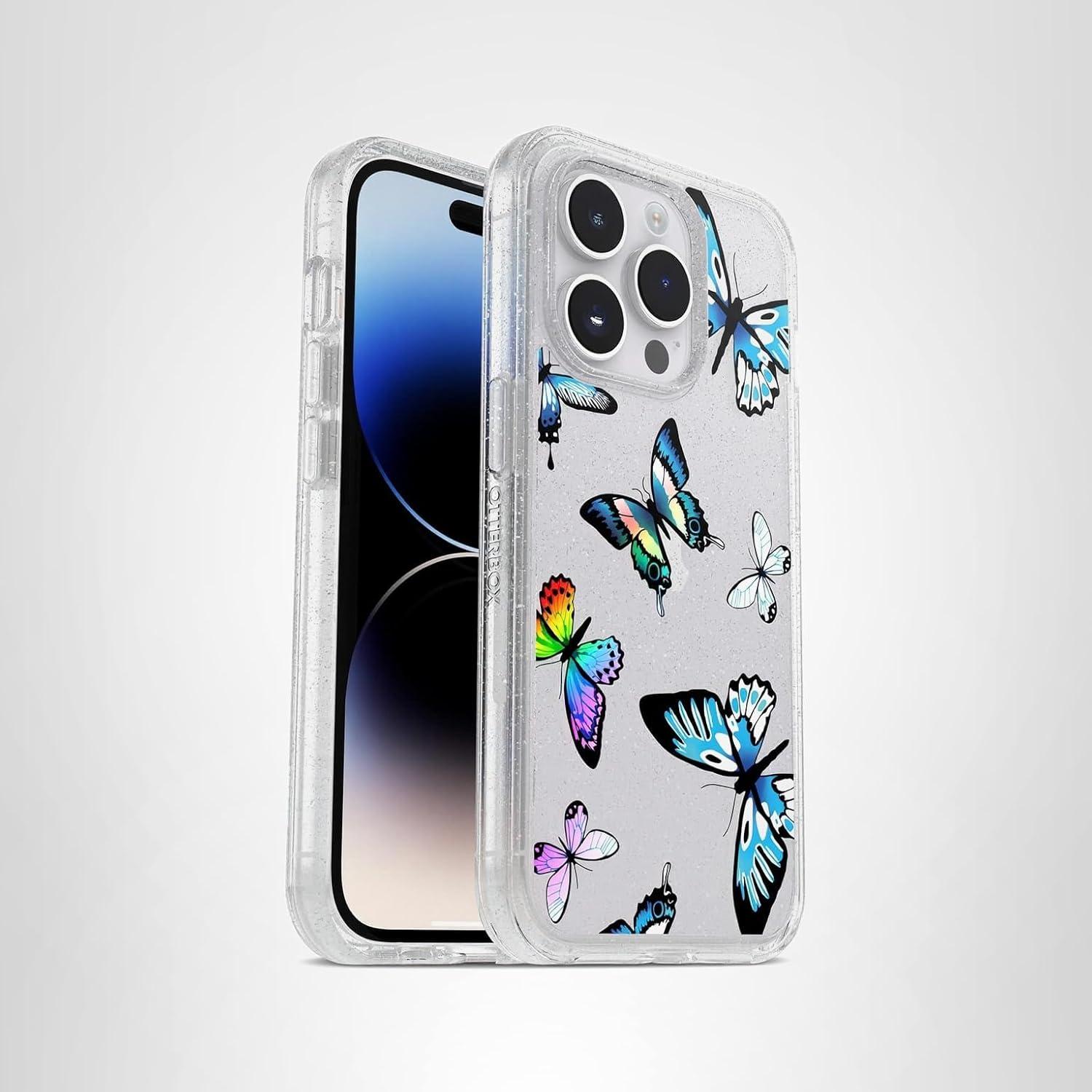 OtterBox iPhone 14 Pro (ONLY) Symmetry Series Case – Black, Ultra-Sleek, Wireless Charging Compatible, Raised Edges Protect Camera & Screen(Y2K Butterfly)