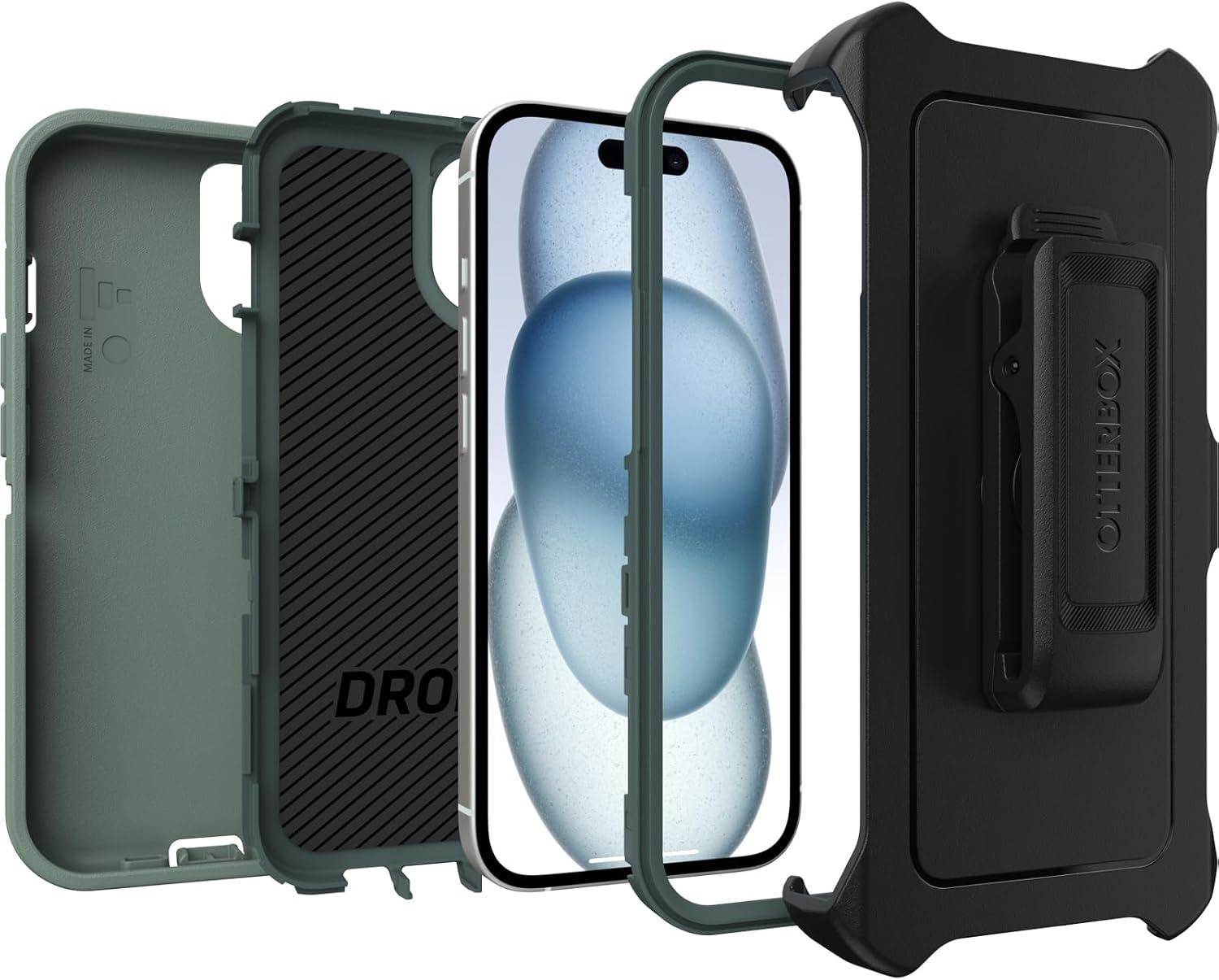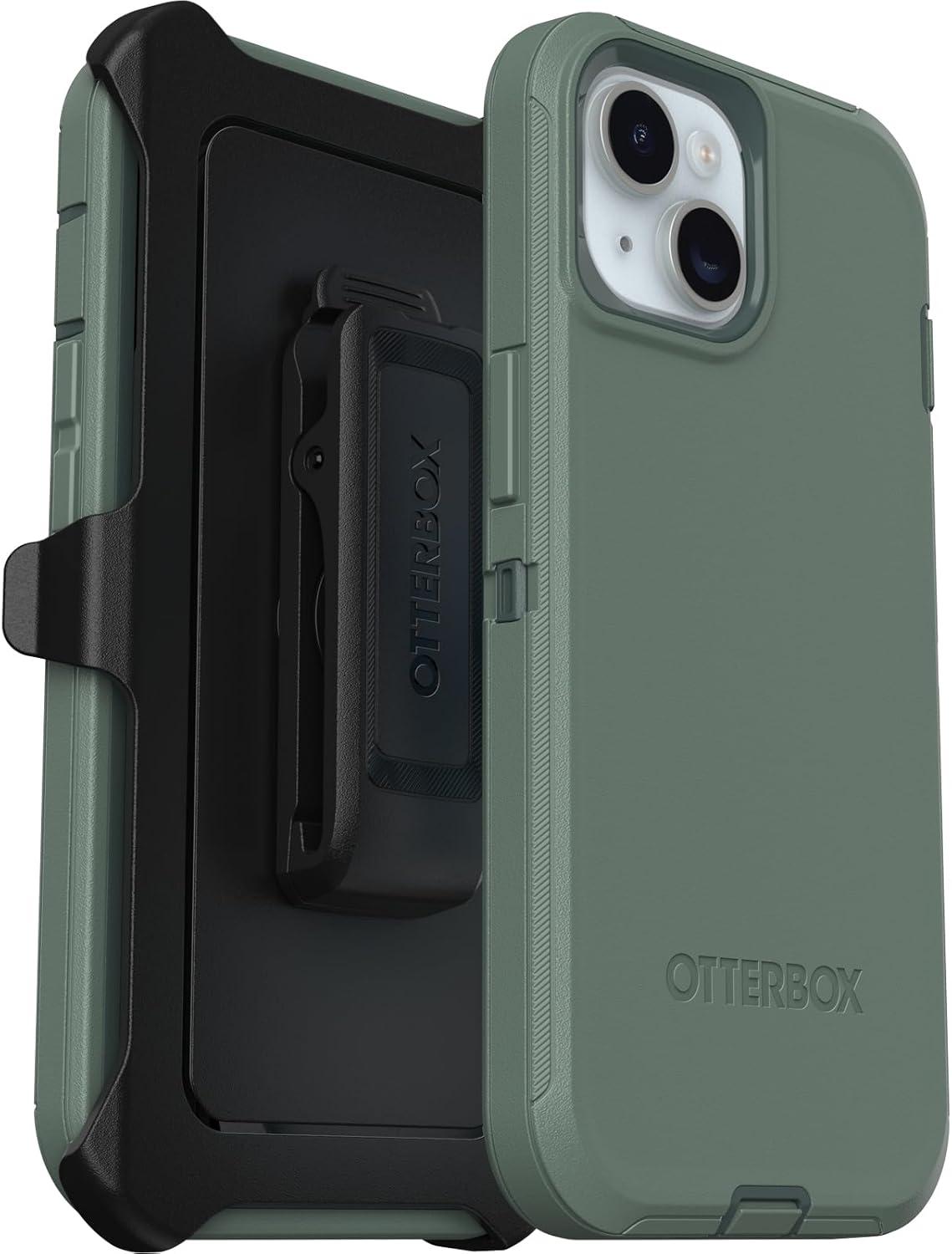 OtterBox iPhone 15, iPhone 14, and iPhone 13 Defender Series Case – FOREST RANGER (Green), Screenless, Rugged & Durable, with Port Protection, Includes Holster Clip Kickstand