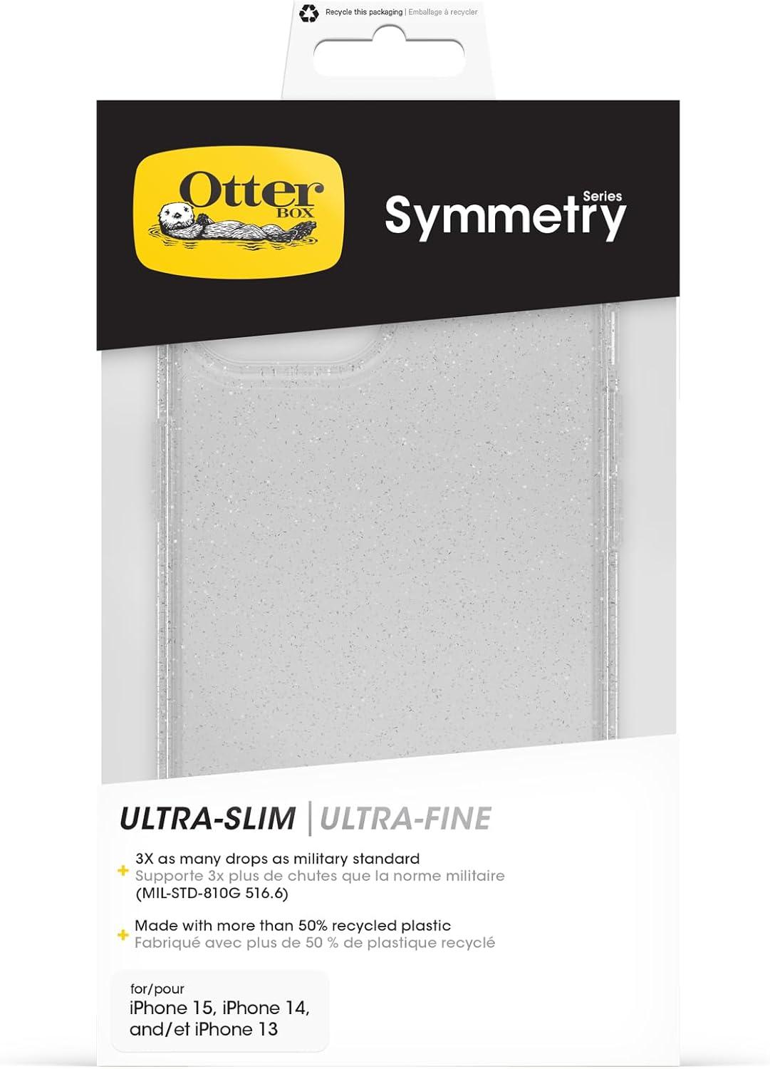 OtterBox iPhone 15, iPhone 14, and iPhone 13 Symmetry Clear Series Case – Stardust(Clear/Glitter), Ultra-Sleek, Wireless Charging Compatible, Raised Edges Protect Camera & Screen