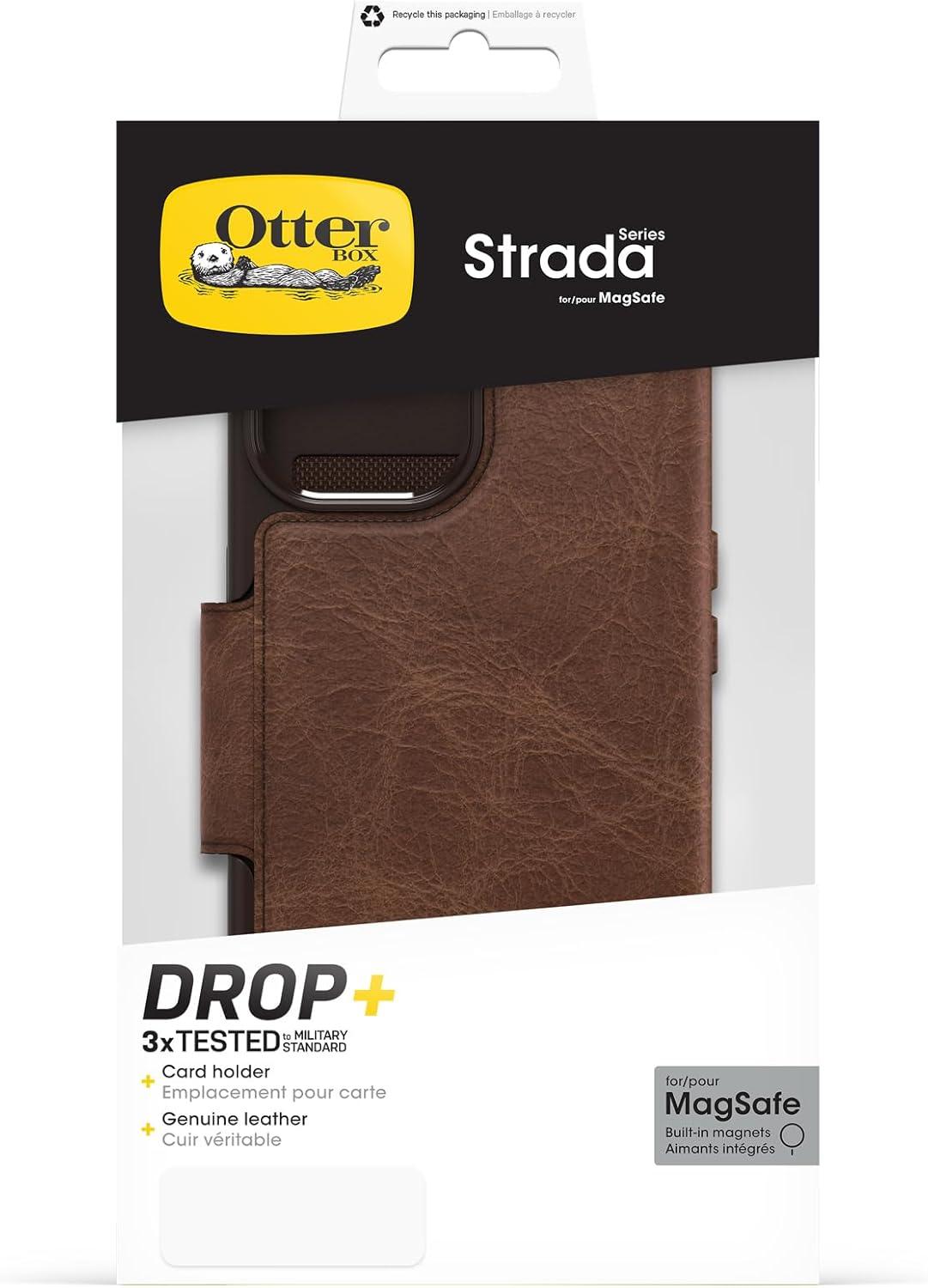 OtterBox iPhone 15 (Only) Strada Folio Series Case – Espresso (Brown), Card Holder, Snaps to MagSafe, Genuine Leather, Pocket-Friendly, Folio case(Brown)
