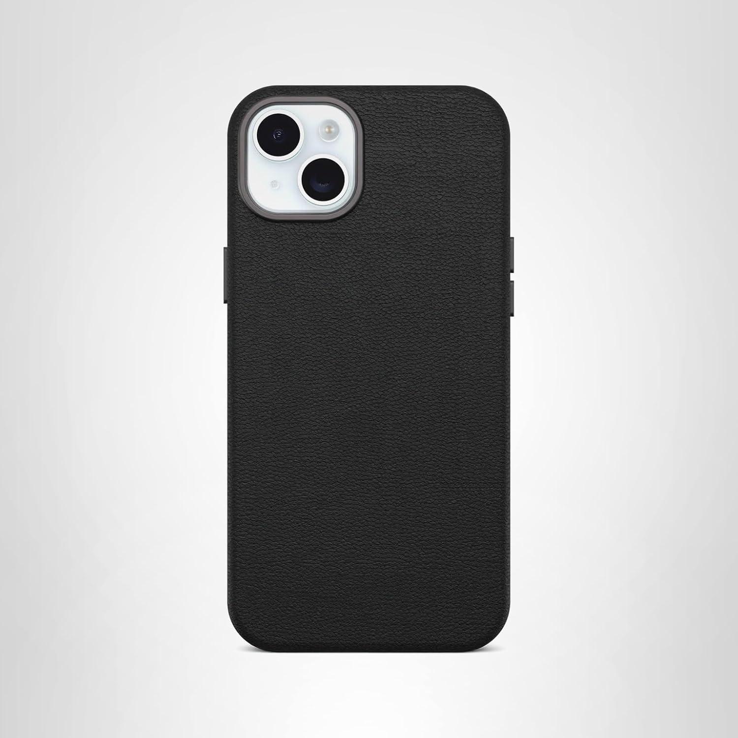 OtterBox iPhone 15 Plus Symmetry Series Cactus Leather for MagSafe – Noir ASH (Black), Snaps to MagSafe, Ultra-Sleek, Raised Edges Protect Camera & Screen(Black)