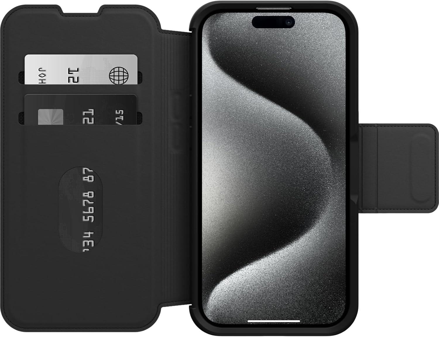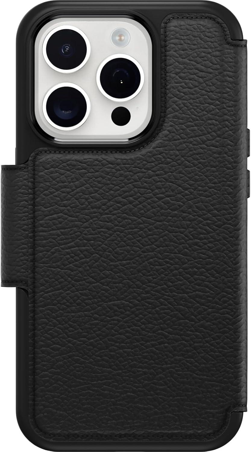 OtterBox iPhone 15 Pro (Only) Strada Folio Series Case – SHADOW (Black), card holder, snaps to MagSafe, genuine leather, pocket-friendly, folio case (ships in polybag, ideal for business customers)