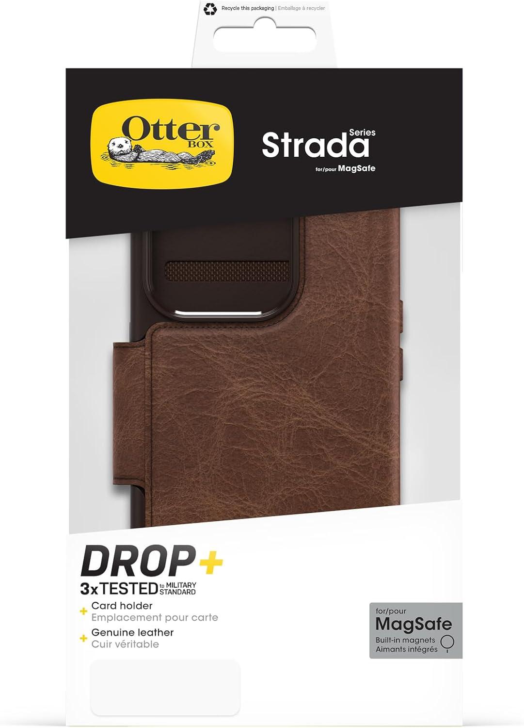OtterBox iPhone 15 Pro (Only) Strada Folio Series Case – Shadow (Black), Card Holder, Snaps to MagSafe, Genuine Leather, Pocket-Friendly, Folio case(Brown)