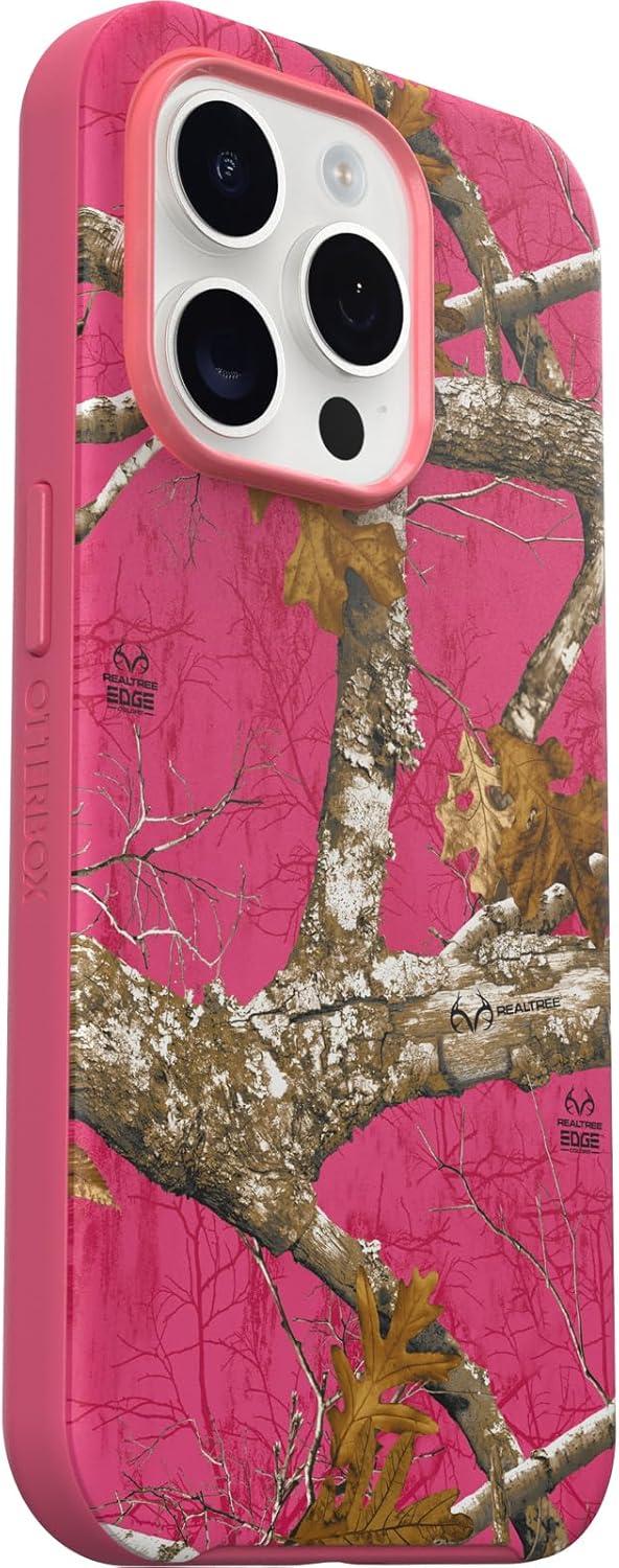 OtterBox iPhone 15 Pro (Only) Symmetry Series Case – Realtree Flamingo Pink, Snaps to MagSafe, Ultra-Sleek, Raised Edges Protect Camera & Screen