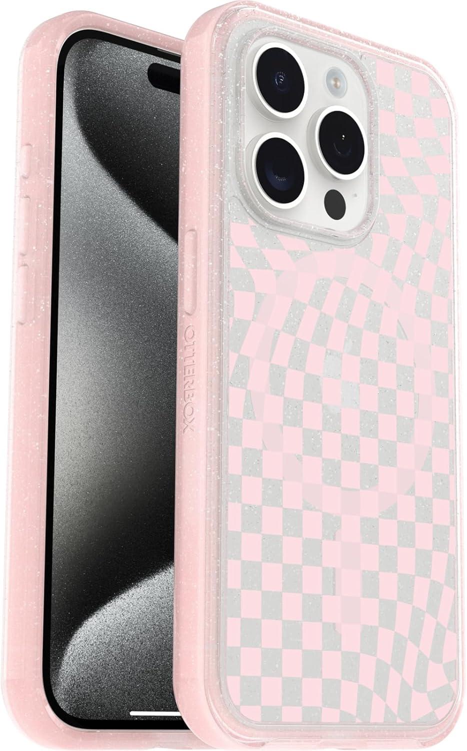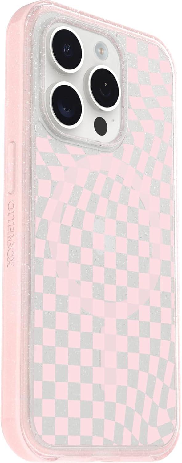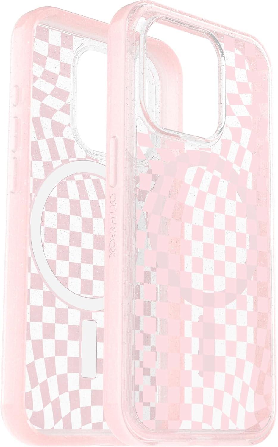 OtterBox iPhone 15 Pro (Only) Symmetry Series Clear Case – Checkmate (Pink), Snaps to MagSafe, Ultra-Sleek, Raised Edges Protect Camera & Screen