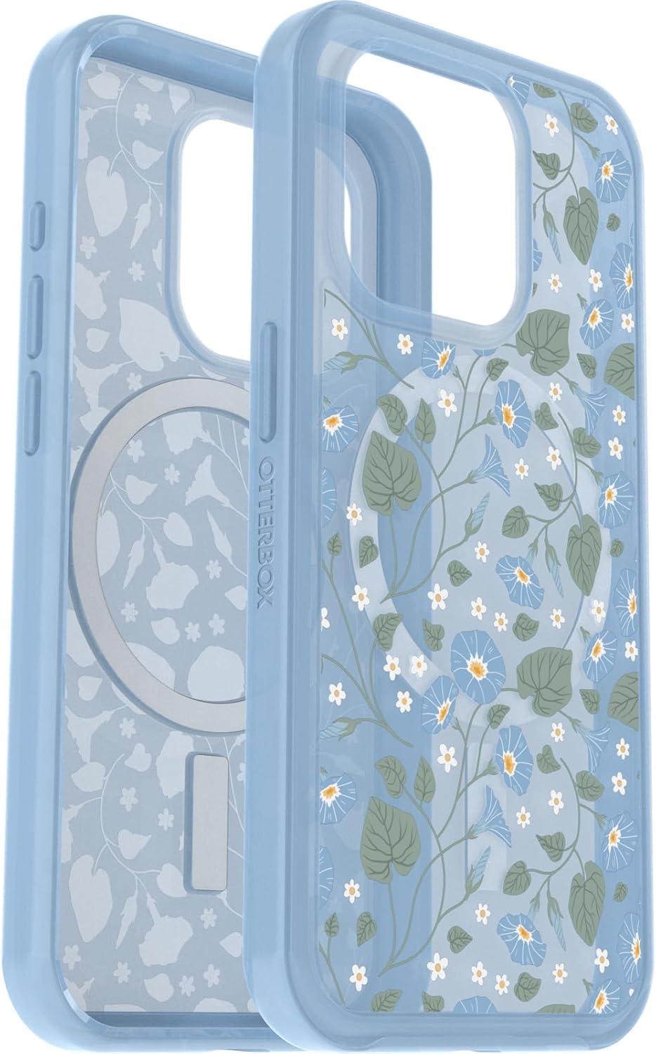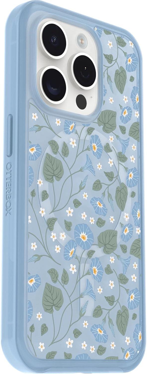 OtterBox iPhone 15 Pro (Only) Symmetry Series Clear Case – Dawn Floral (Blue), Snaps to MagSafe, Ultra-Sleek, Raised Edges Protect Camera & Screen