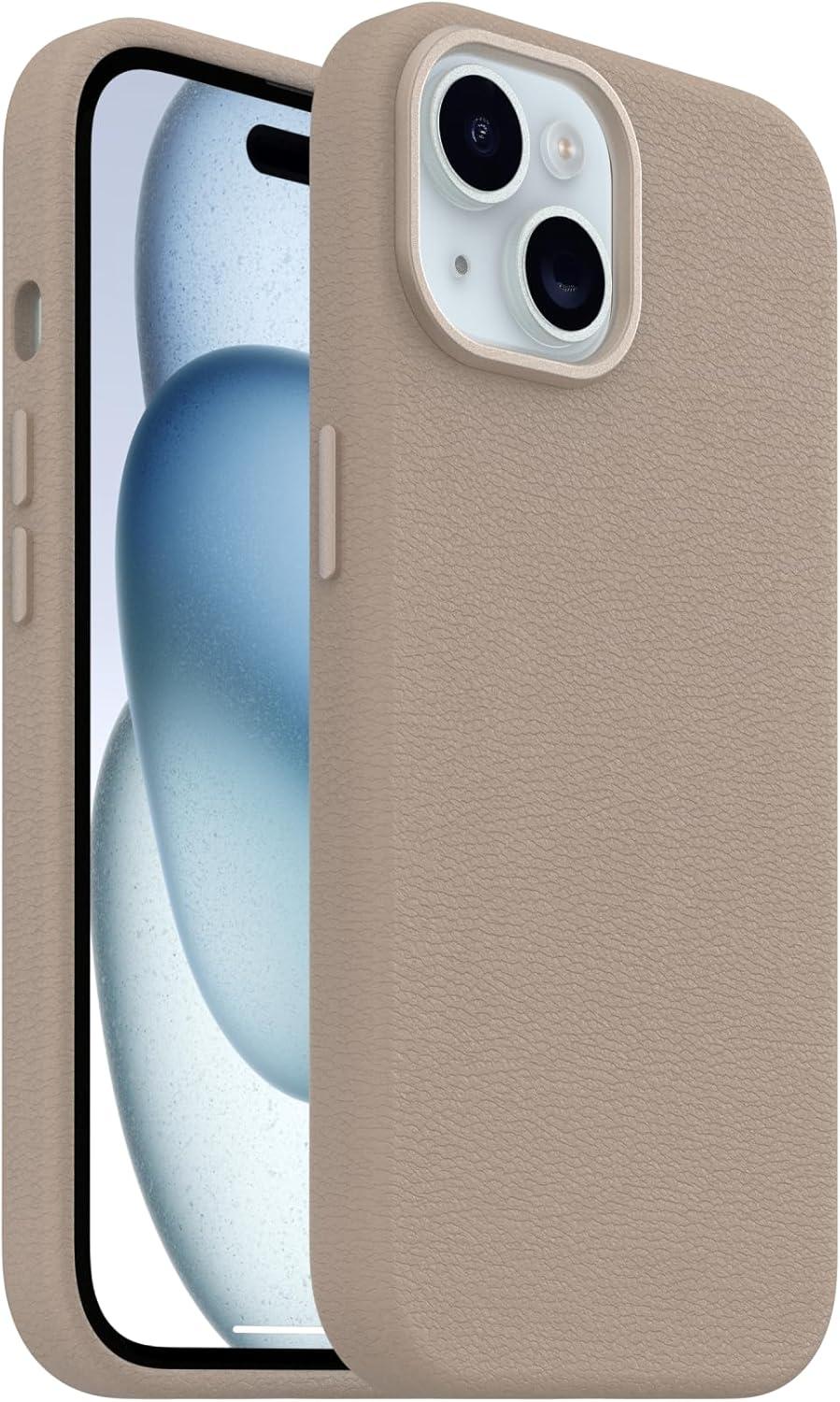 OtterBox iPhone 15 Pro Symmetry Series Cactus Leather for MagSafe – Rich Adobe (Brown), sustainably sourced, Snaps to MagSafe, Ultra-Sleek, Raised Edges Protect Camera & Screen(New: Grey Comfort)