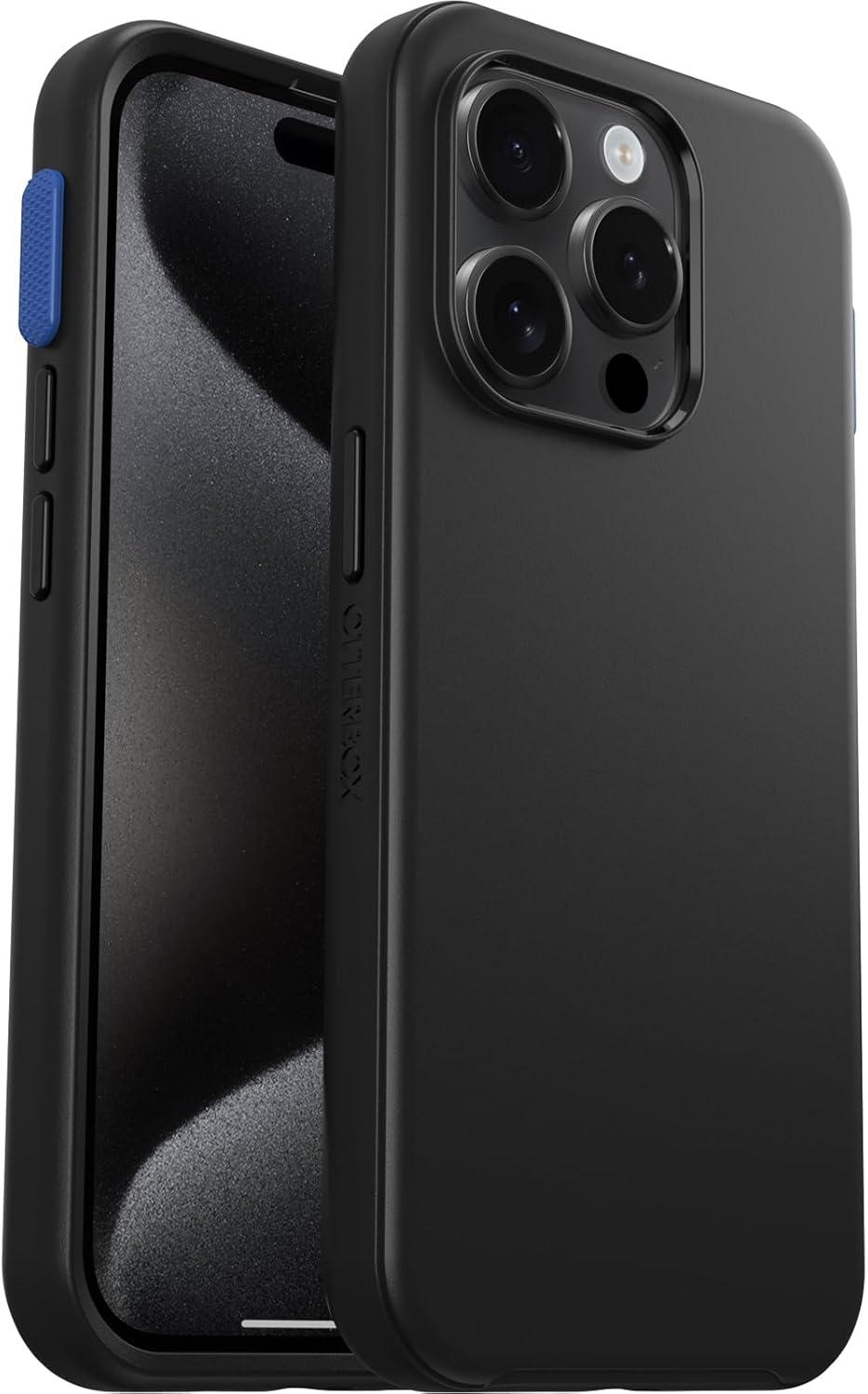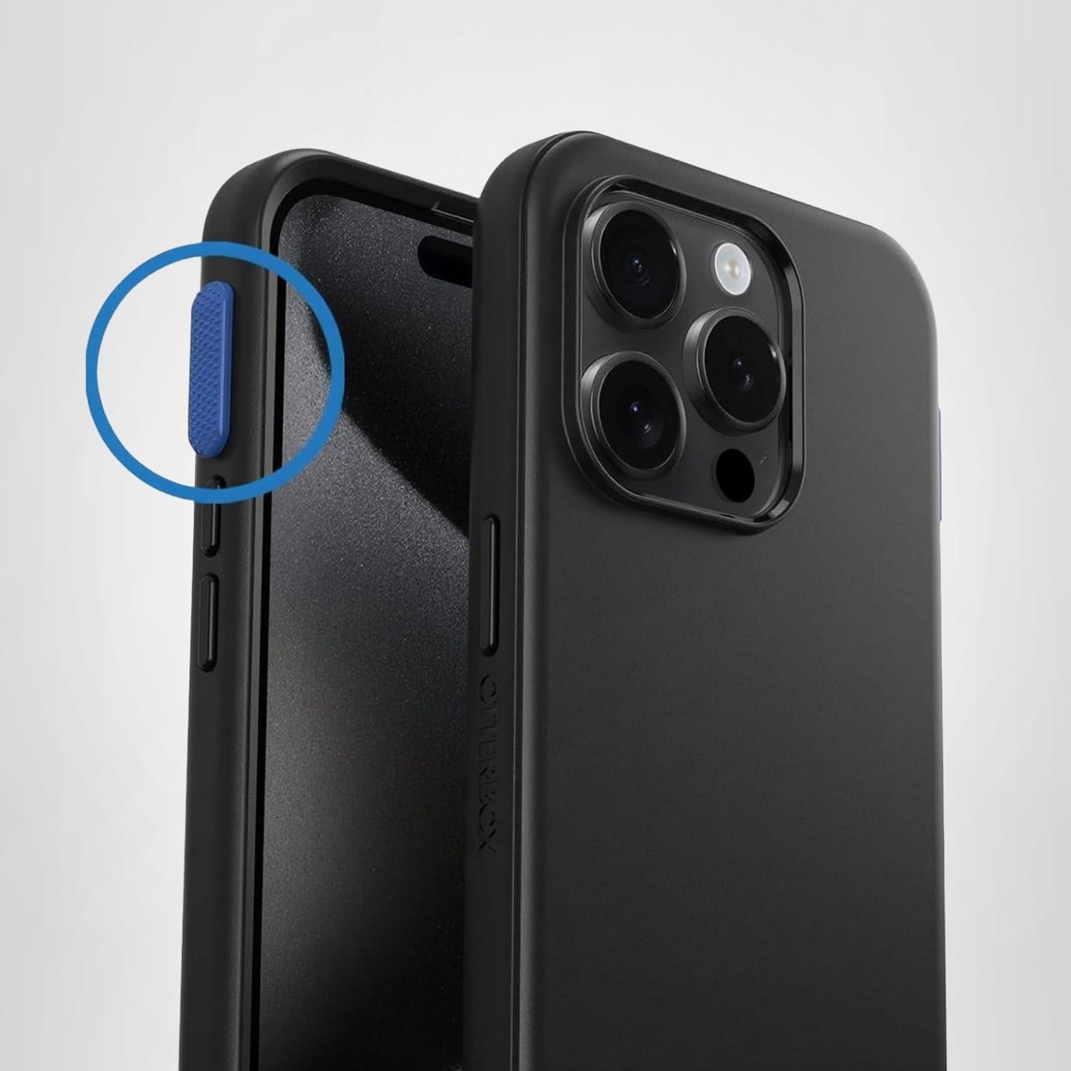OtterBox iPhone 15 Pro Symmetry Series with Enhanced Action Button (Ships in Polybag, Ideal for Business Customers)(Black w/ Blue Button)