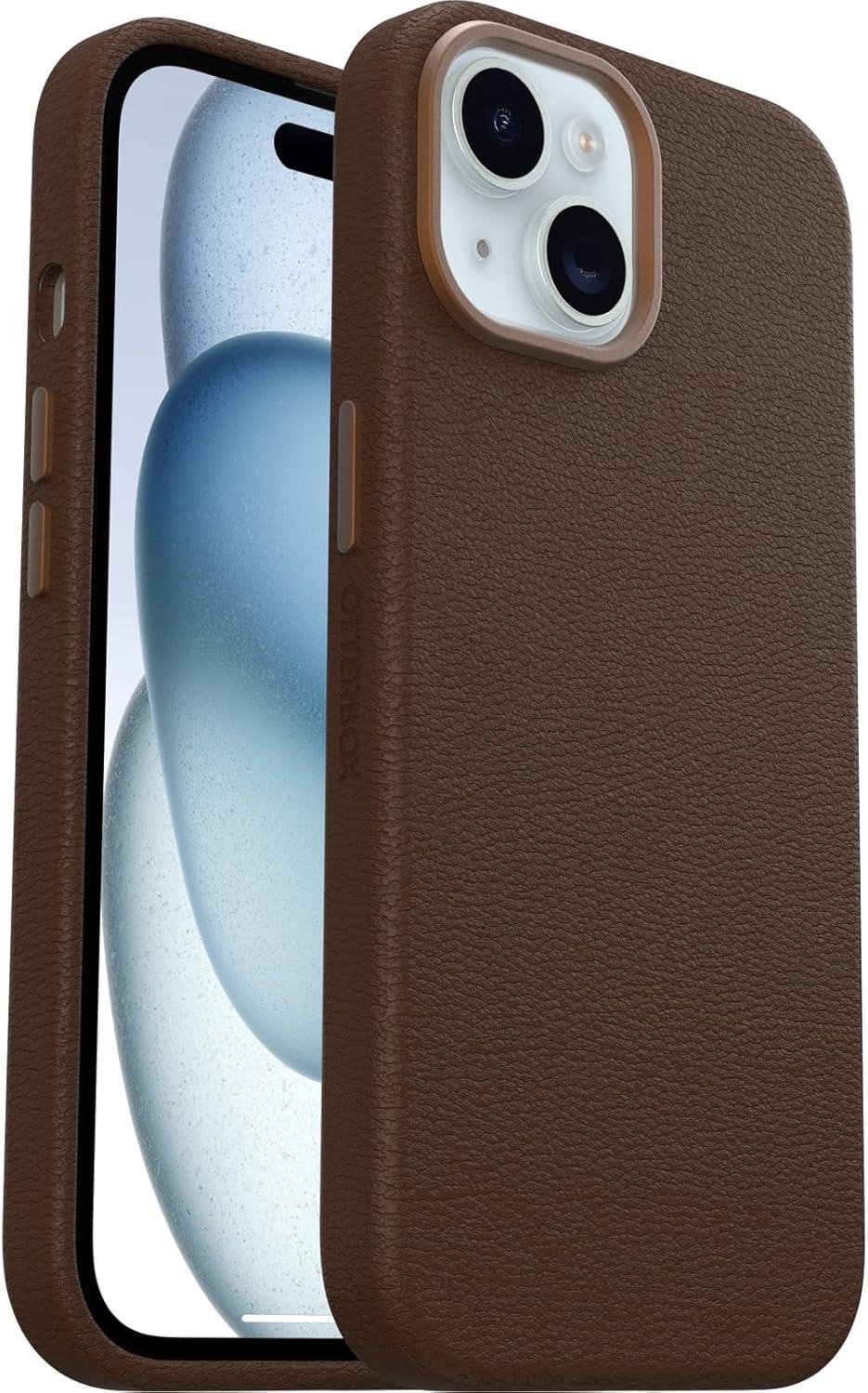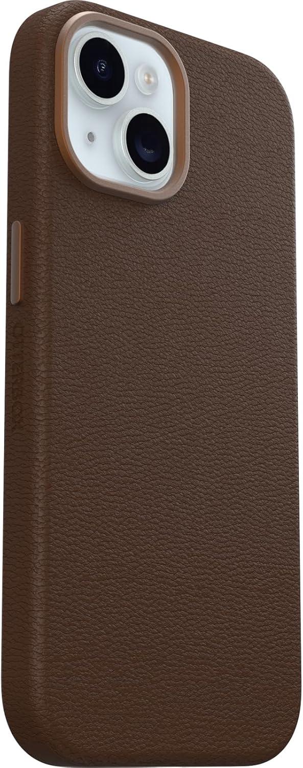 OtterBox iPhone 15 Symmetry Series Cactus Leather for MagSafe – Rich Adobe (Brown), Snaps to MagSafe, Ultra-Sleek, Raised Edges Protect Camera & Screen