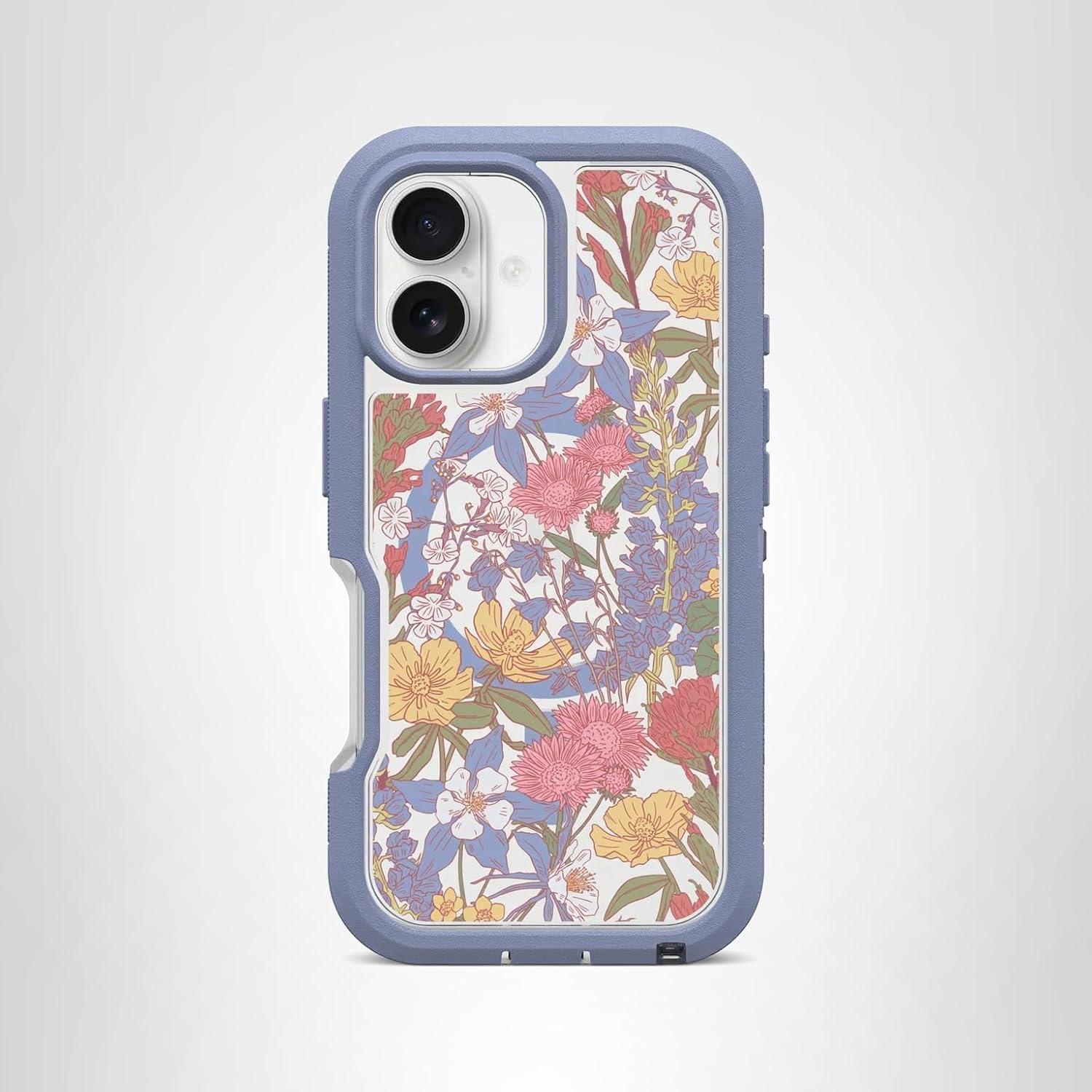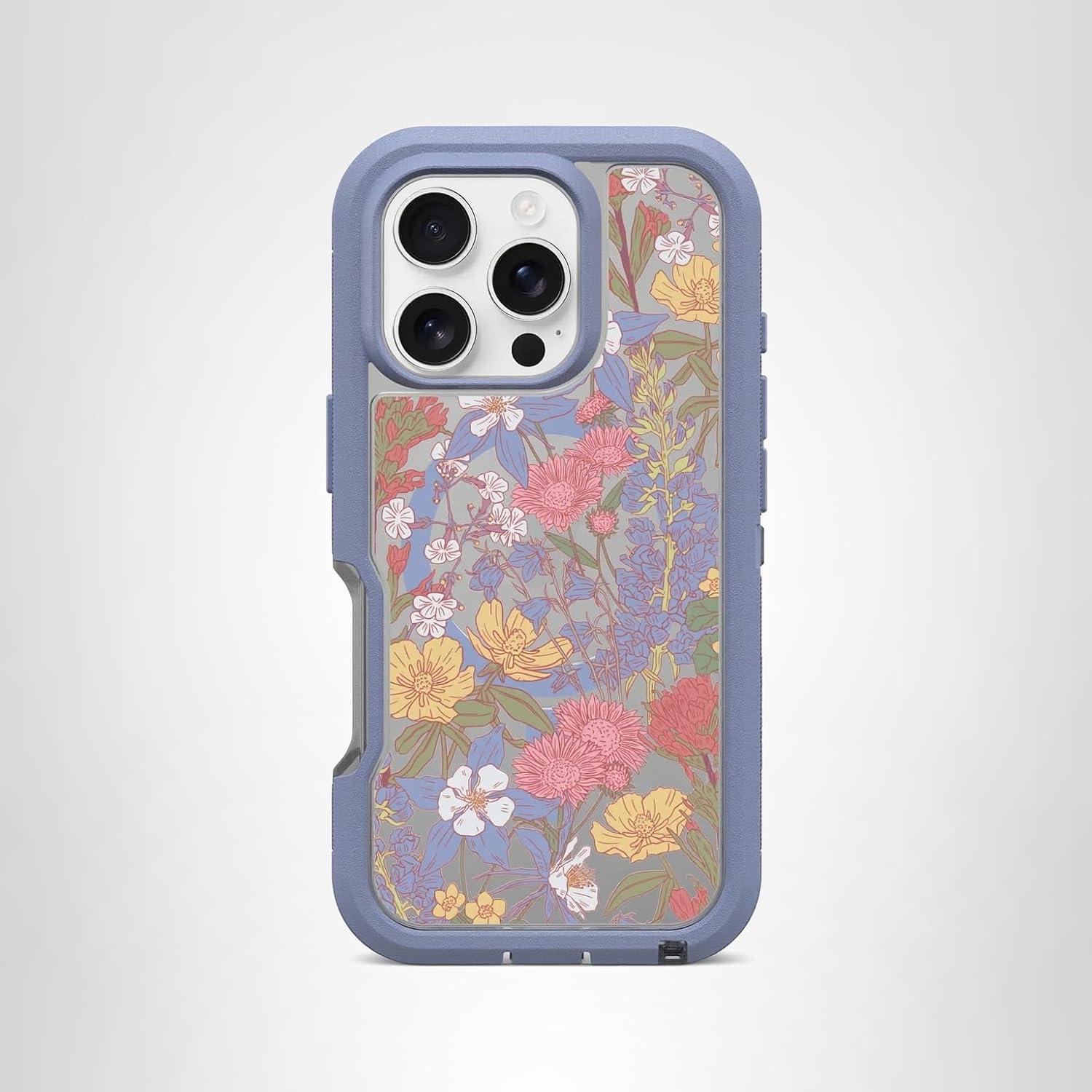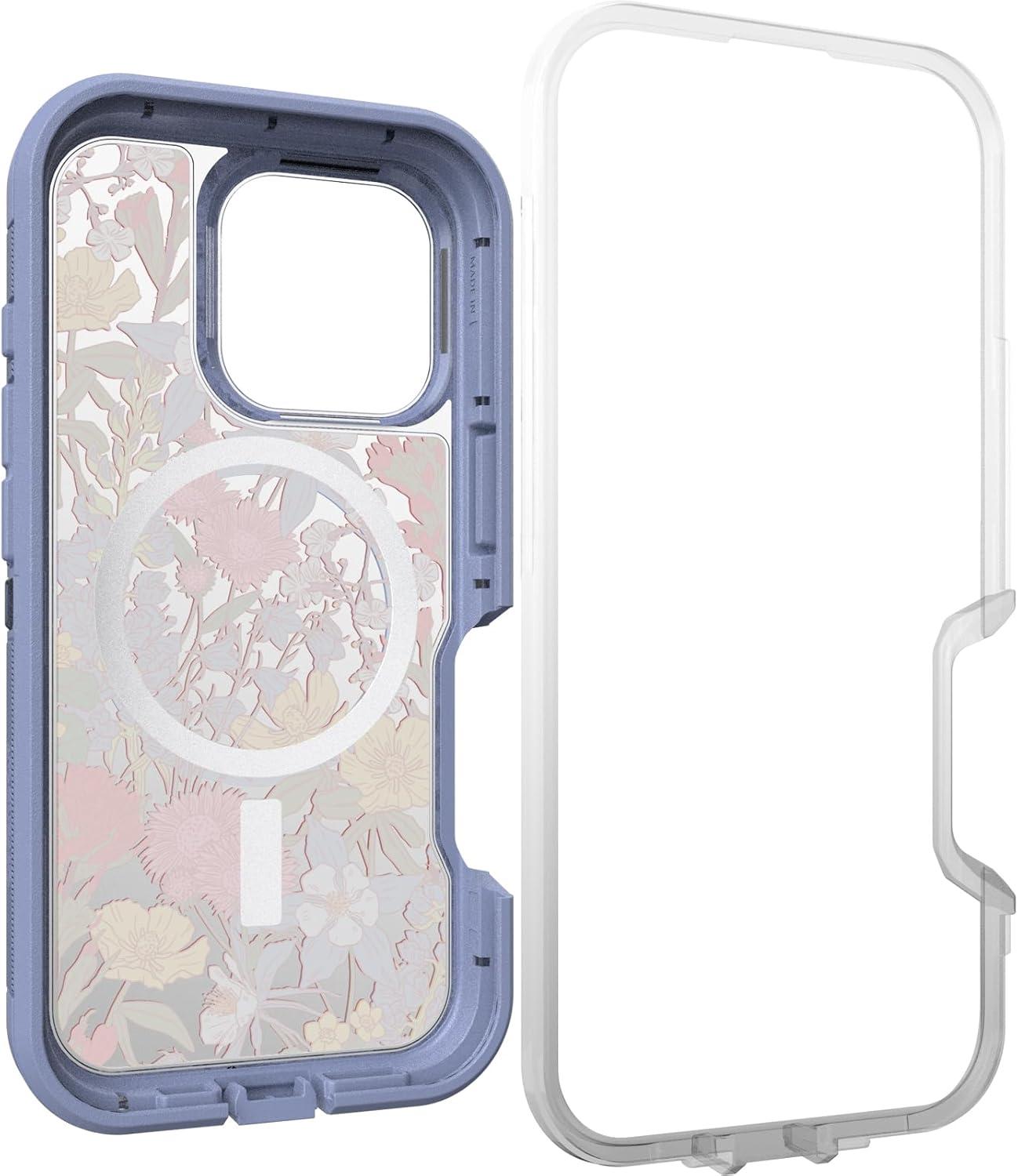 OtterBox iPhone 16 Pro Defender Series XT Clear Case – Floral Purple(Floral Purple)