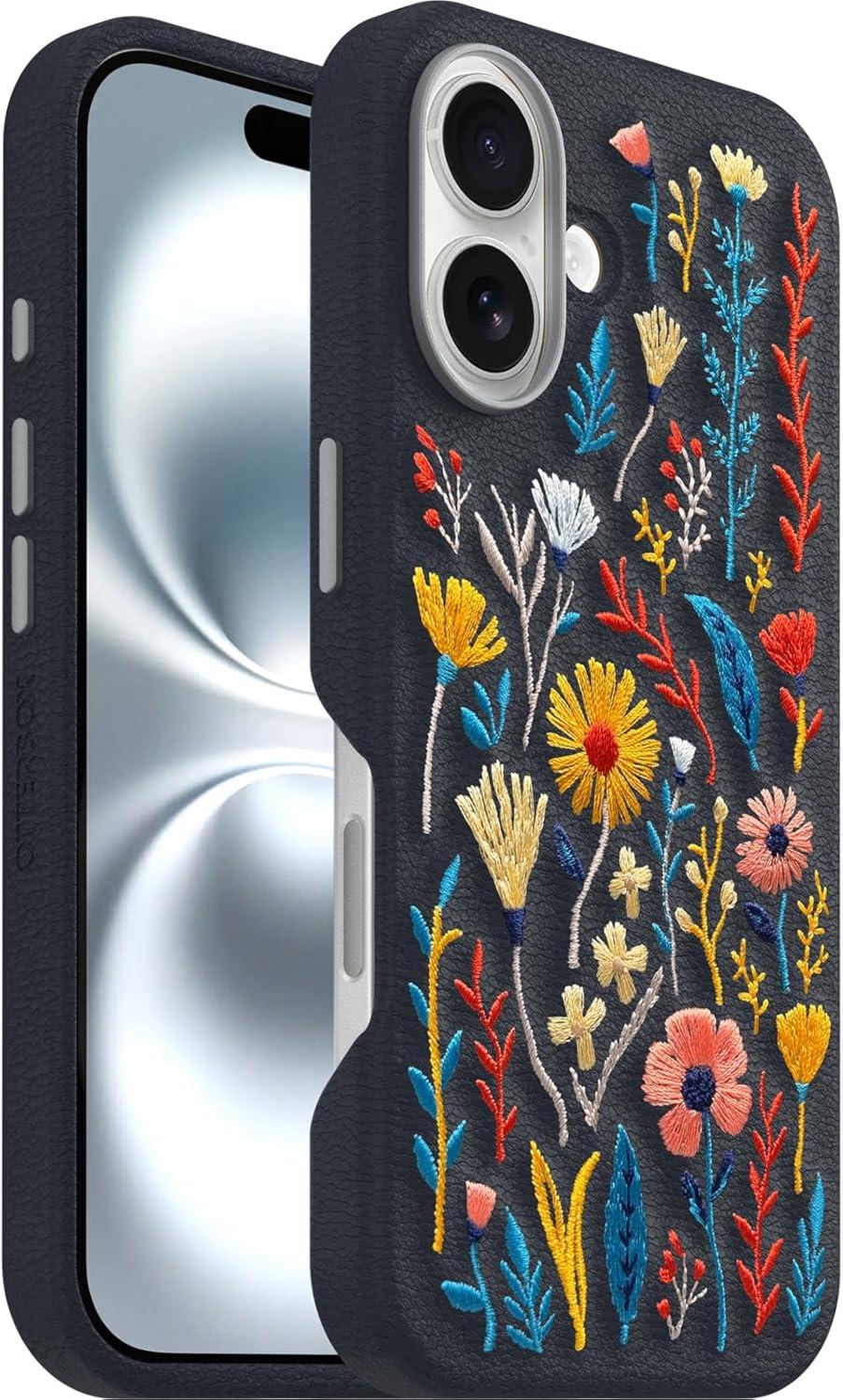 OtterBox iPhone 16 Symmetry Series Cactus Leather Embroidery for MagSafe – Enchanted Garden Blue