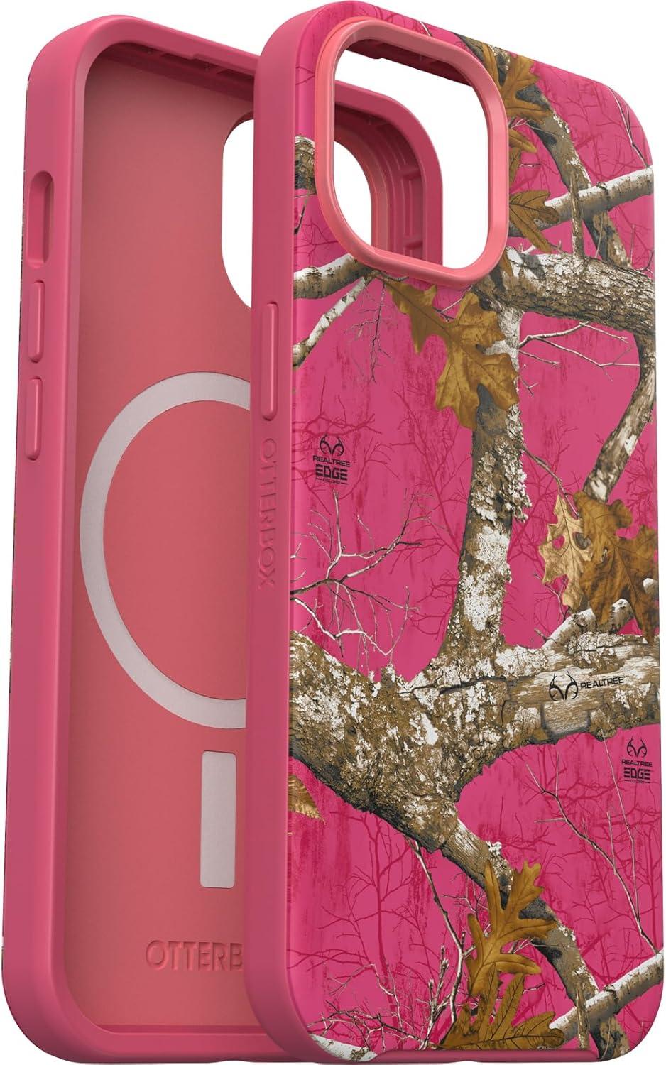 OtterBox iPhone 16e, 15, 14, & 13 Symmetry Series Case – Black, Snaps to MagSafe, Ultra-Sleek, Raised Edges Protect Camera & Screen(Realtree Pink)