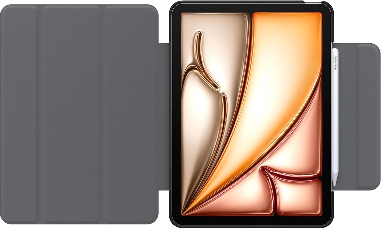 Clear folio iPad Air 11-inch (M2) case protects against drops and scratches and converts into multiple positions for hands-free typing and viewing. The folio’s microfiber lining guards the screen and holds tight with magnets, which also activate sleep/wake modes for quick-start functionality and battery preservation.